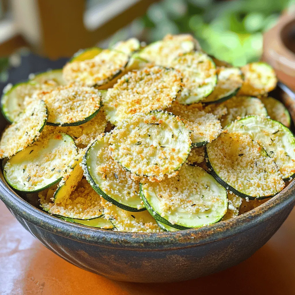 The heart of this recipe is the zucchini. I love using fresh zucchinis because they are crisp and light. When sliced thin, they turn into lovely chips. Next, we have Parmesan cheese. It adds a rich flavor and a nice crunch when baked. I often use panko bread crumbs for extra crispiness. They give a great texture to each chip.