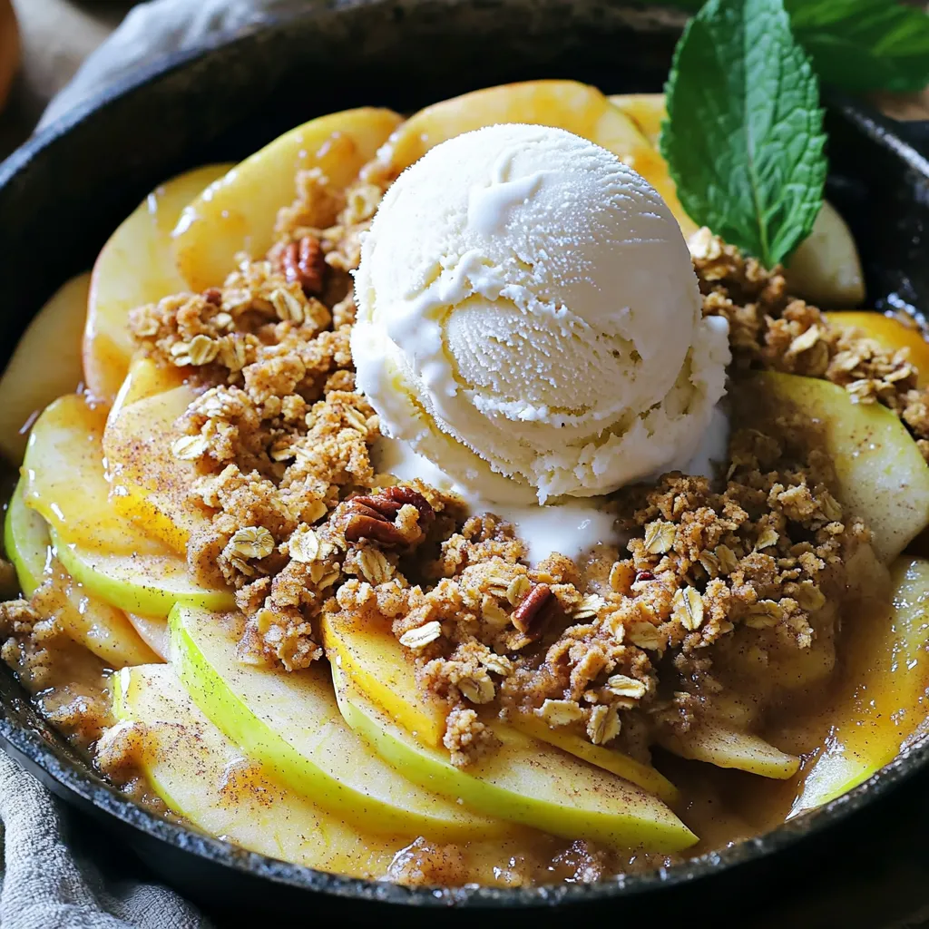 Apple Crisp Skillet with Vanilla Ice Cream Delight