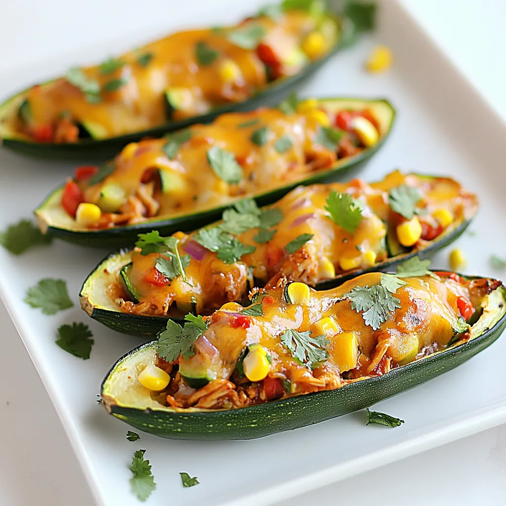 Each ingredient plays a key role. The zucchinis act as the perfect boats for the filling. The cooked chicken provides protein and pairs well with BBQ sauce. Corn adds sweetness, while the bell pepper and onion give crunch and flavor. The cheese on top melts beautifully, creating a creamy finish. Garlic powder and smoked paprika boost the taste, while salt and pepper round it all out. Finally, fresh herbs add a pop of color and freshness.