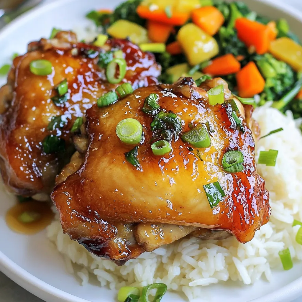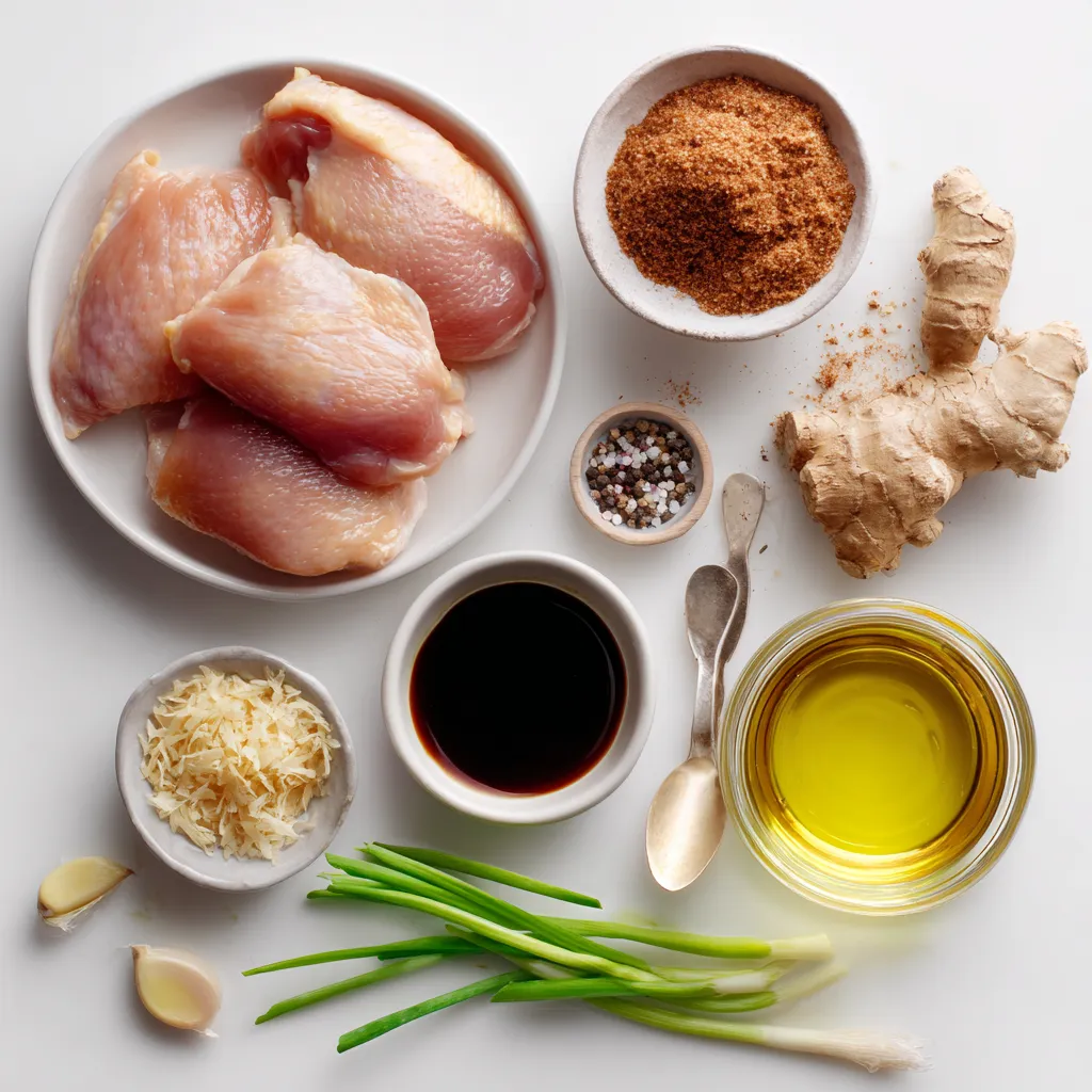 Start by making a tasty marinade. In a medium bowl, whisk together the brown sugar, soy sauce, minced garlic, grated ginger, olive oil, and apple cider vinegar. Whisk until the sugar dissolves. This mix will make your chicken sweet and sticky. Next, season the chicken thighs with salt and pepper. Place them in a resealable bag or a shallow dish. Pour the marinade over the chicken. Make sure every piece is coated. Seal the bag or cover the dish. Let it chill in the fridge for at least 30 minutes. If you have time, marinate overnight for more flavor.