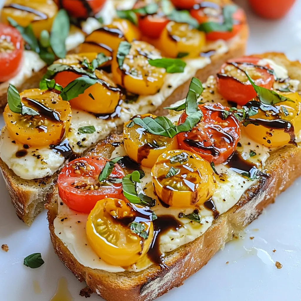 - 1 loaf of French bread or Italian bread - 4 tablespoons unsalted butter, softened - 3 cloves garlic, minced - 1 teaspoon dried oregano - 1 teaspoon dried basil - 1 cup cherry tomatoes, halved - 1 cup fresh mozzarella balls, quartered - 1/2 cup fresh basil leaves, chopped - Salt and pepper to taste - Balsamic glaze (optional, for drizzling) To create Caprese garlic bread, you need simple ingredients that burst with flavor. Start with a loaf of French or Italian bread. Both types work well and give you a nice crust. Next, grab some unsalted butter. Softening it makes mixing easier. You’ll also need fresh garlic, which gives a bold taste. Minced garlic is best for even flavor. Now, let’s add some herbs. Dried oregano and dried basil will bring warmth and depth. For a fresh touch, use cherry tomatoes. Halved, they add sweetness and color. Fresh mozzarella balls take this dish to the next level. They melt beautifully and create a creamy texture. Don’t forget fresh basil leaves for that iconic Caprese flavor. Season with salt and pepper to elevate the taste. If you want an extra zing, consider balsamic glaze. It adds a sweet-tart finish that many love. With these ingredients, you are ready to make a dish that impresses everyone. Enjoy every bite of this delightful and easy recipe. {{ingredient_image_1}} - Preheat your oven to 400°F (200°C). - Slice the loaf of bread in half lengthwise. Place it cut side up on a baking sheet. - In a small bowl, combine 4 tablespoons of softened butter, 3 cloves of minced garlic, 1 teaspoon of dried oregano, and 1 teaspoon of dried basil. - Mix until everything is well blended and smooth. - Spread the garlic butter mix evenly on the cut sides of the bread. - Bake the bread for about 10-12 minutes. Look for a light toast and crisp edges. - While the bread toasts, take a bowl and combine 1 cup of halved cherry tomatoes, 1 cup of quartered fresh mozzarella balls, ½ cup of chopped fresh basil, salt, and pepper. Toss gently to mix. - Once the bread is toasted, remove it from the oven. Pile the tomato and mozzarella mix generously on top of each half. - Return the bread to the oven and bake for another 5-7 minutes. Wait until the cheese is melted and bubbly. - If you like, drizzle balsamic glaze on top for extra flavor. - Slice the bread into pieces and serve warm. To make garlic butter shine, mix the butter and garlic well. Spread it evenly on the bread. This ensures each bite bursts with flavor. You can swap unsalted butter for olive oil or vegan butter. Use what you enjoy most. Bake the bread at 400°F (200°C) for about 10-12 minutes. Keep an eye on it! You want it golden and slightly crispy. To check for crispiness, gently press the edges. If they feel firm, it’s ready. For a beautiful presentation, slice the bread and arrange it on a wooden board. Add whole basil leaves on top for color. Pair your Caprese Garlic Bread with a fresh lemonade or a light white wine. This adds a delightful touch to your meal. Pro Tips Use Fresh Ingredients: Opt for fresh mozzarella and ripe cherry tomatoes to enhance the flavor of your Caprese Garlic Bread. Customize Herbs: Feel free to substitute or add other herbs like thyme or parsley to the garlic butter for a unique twist. Monitor Baking Time: Keep an eye on the bread while it's baking, as ovens can vary. You want it golden and crispy, not burnt. Balsamic Glaze Tip: For a more intense flavor, reduce balsamic vinegar in a saucepan until thickened before drizzling over the finished bread. {{image_2}} You can boost the flavor of Caprese garlic bread in many ways. Here are some ideas: - Olives: Add sliced black or green olives for a salty kick. - Pesto: Spread a layer of pesto before the garlic butter for extra depth. - Red Pepper Flakes: Sprinkle some for a spicy touch. - Artichokes: Toss in some marinated artichoke hearts for a tangy twist. Feel free to mix and match toppings based on your taste. You can add as many toppings as you like. Just remember to balance flavors so they shine through. If you have dietary needs, don't worry! Caprese garlic bread can still be a hit. - Gluten-free options: Use gluten-free bread. Many stores sell good gluten-free loaves. - Vegan alternatives: Replace butter with vegan butter or olive oil. Use dairy-free cheese for a creamy finish. These adjustments let everyone enjoy this tasty dish, no matter their diet. To keep your Caprese garlic bread fresh, use proper sealing methods. First, let it cool to room temperature. Then, wrap the bread tightly in plastic wrap or aluminum foil. This helps keep the moisture in. You can also place it in an airtight container. Store it in the refrigerator for up to three days. If you want to keep it longer, you can freeze it. Wrap it well, and it will last for up to three months. To enjoy your leftover Caprese garlic bread, reheating is key. The best method is to use the oven. Preheat it to 350°F (175°C). Place the bread on a baking sheet. Heat it for about 10 minutes. This method helps keep the bread crisp. Avoid using the microwave. Microwaving can make the bread soggy. If you want to heat individual pieces, a toaster oven works well too. Make sure to check it often to prevent burning. Enjoy your warm, cheesy bread just like the first time! If you don't have fresh basil, you can use dried basil. Use about one teaspoon of dried basil. You can also add some fresh parsley or arugula for a different taste. This adds a nice green color too. Mix it in with the tomatoes and cheese. Your Caprese Garlic Bread will still taste great! Yes, you can use different cheeses! If you want a stronger taste, try feta or goat cheese. If you like creaminess, use ricotta. Just keep the mozzarella for that classic Caprese flavor. Mix and match to find your favorite. Cheese adds a lot of fun to this dish! You can prepare some parts ahead of time. Make the garlic butter and store it in the fridge. You can also slice the bread and keep it wrapped. Just wait to add the tomatoes