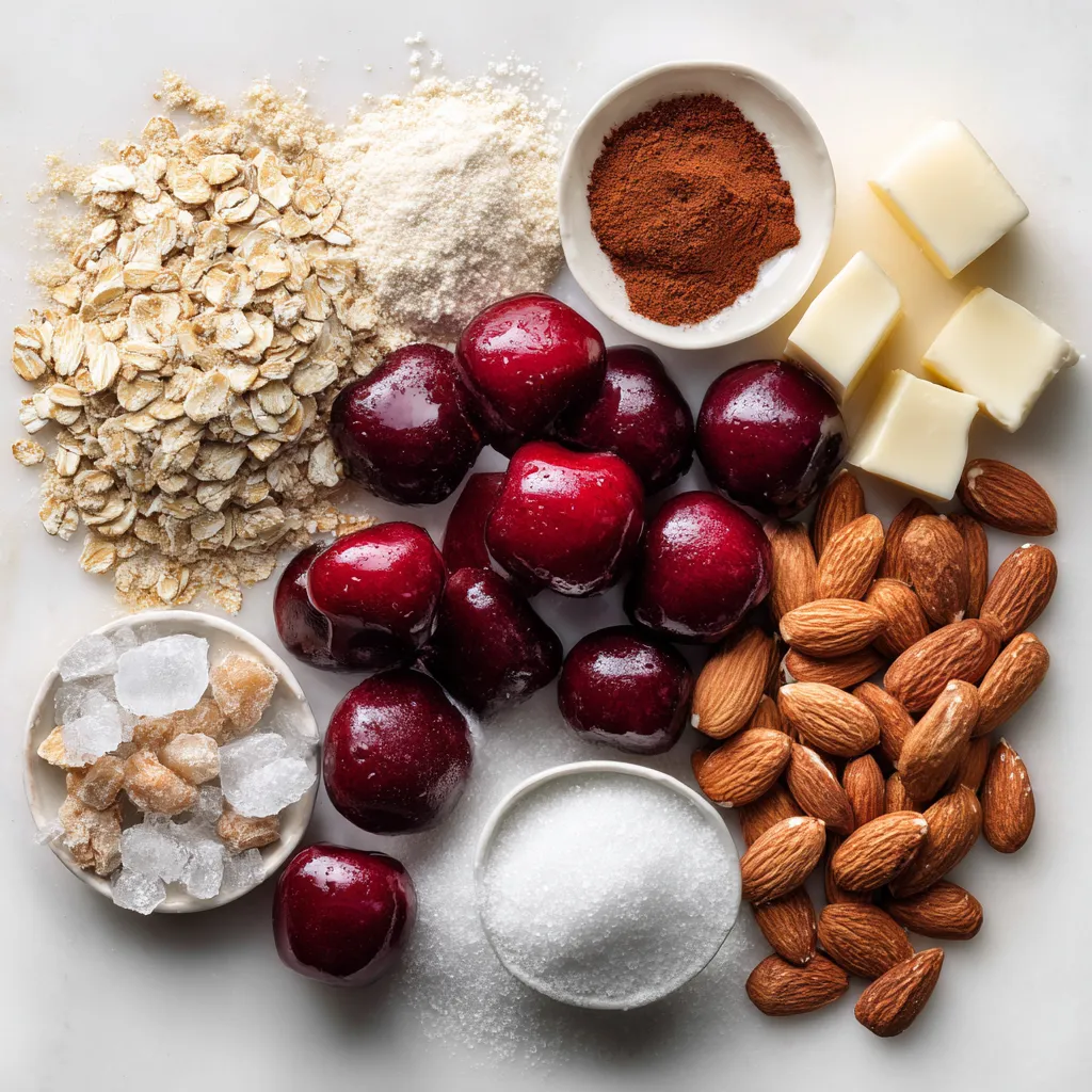 These ingredients create a tasty balance of sweet cherries and nutty almonds. The oats add texture, while the sugars bring sweetness.