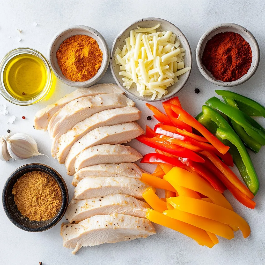 Start with fresh chicken. Slice it thin so it cooks fast. Use a colorful bell pepper for taste and looks. Onions add sweetness, and garlic gives a nice kick.