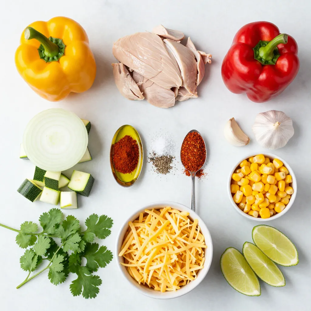 The ingredients for Chicken Fajita Stuffed Peppers are simple and fresh. Bell peppers serve as the tasty vessel. You can choose any color you like—red, green, yellow, or orange. Each color brings a unique flavor.