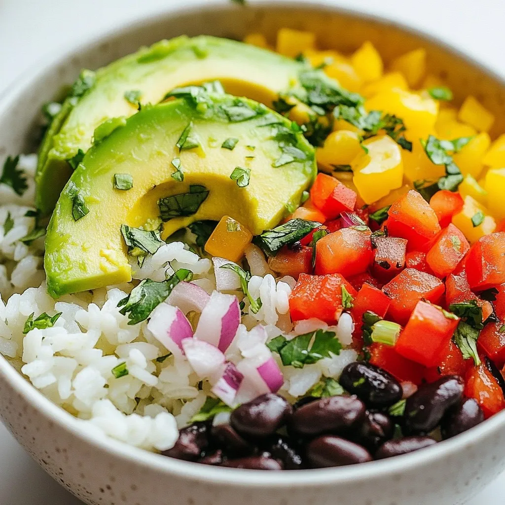 Fresh cilantro is a must for that vibrant flavor. Black beans add protein and a nice texture. I always choose a red bell pepper for its sweetness and color. Avocado adds creaminess, and red onion gives a slight crunch. Corn, whether fresh or frozen, adds a pop of sweetness. Lastly, cumin and garlic powder enhance the overall flavor profile, making every bite delicious.