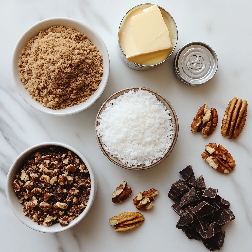 When I make Coconut Caramel Magic Bars, I always gather my ingredients first. Each one plays a key role in the flavor. The graham cracker crumbs provide a crunchy crust. I love using unsalted butter for the perfect balance. Sweetened shredded coconut adds that tropical touch. Semi-sweet chocolate chips bring rich chocolate flavor. Dulce de leche is the star, giving a sweet caramel taste. I like chopped pecans or walnuts for crunch. A sprinkle of sea salt enhances all the flavors. Finally, sweetened condensed milk binds it all together.