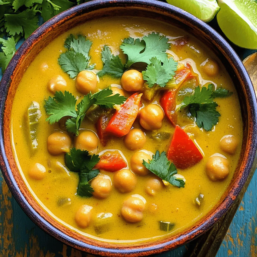 Before you serve, garnish your soup with fresh cilantro. This adds a pop of color and flavor. Don’t forget to add a squeeze of lime juice on top. This brightens the dish and makes it extra special. Enjoy your Coconut Curry Chickpea Soup!