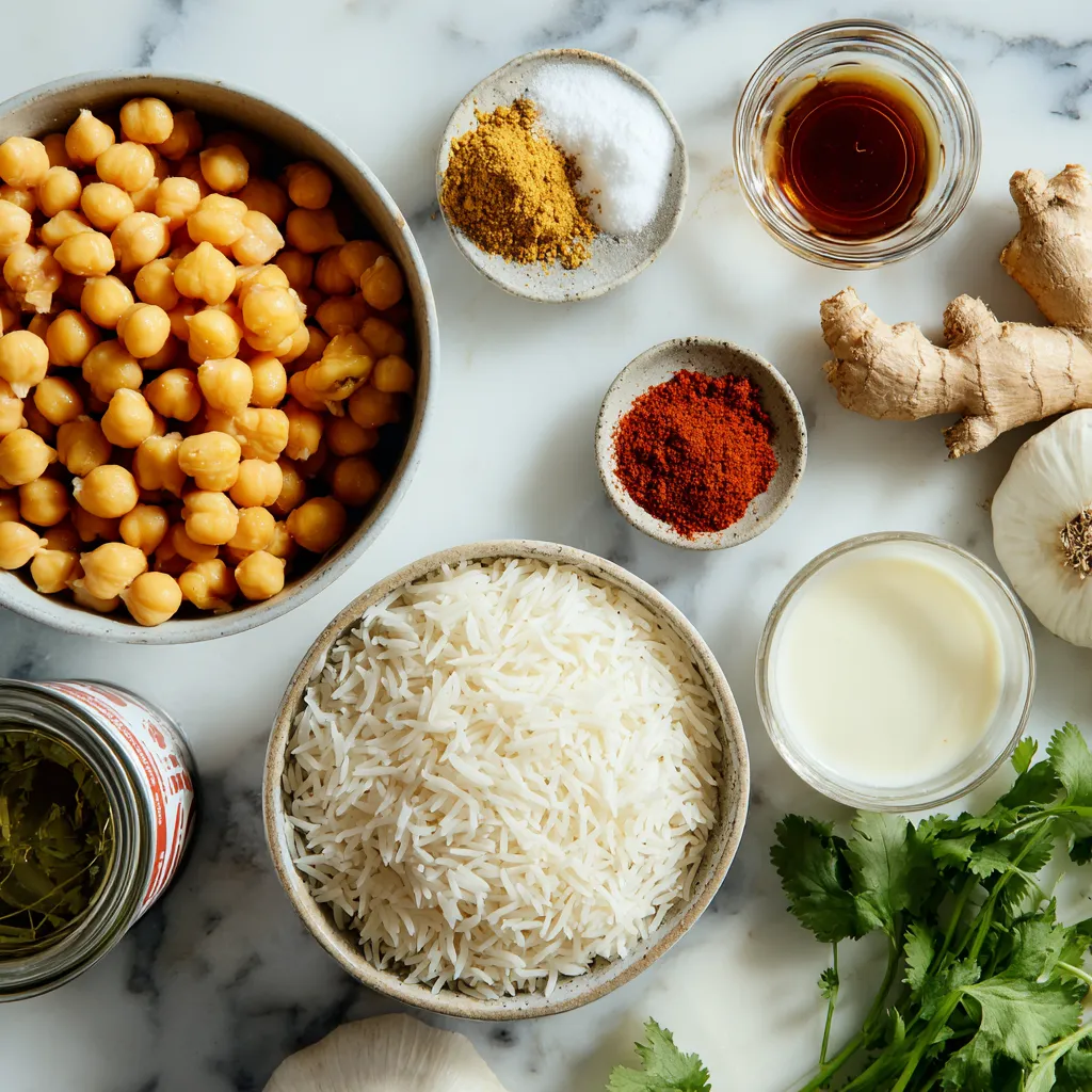 To make Coconut Curry Chickpeas, you need a few simple ingredients. Each one plays a key role in the dish’s flavor and texture.