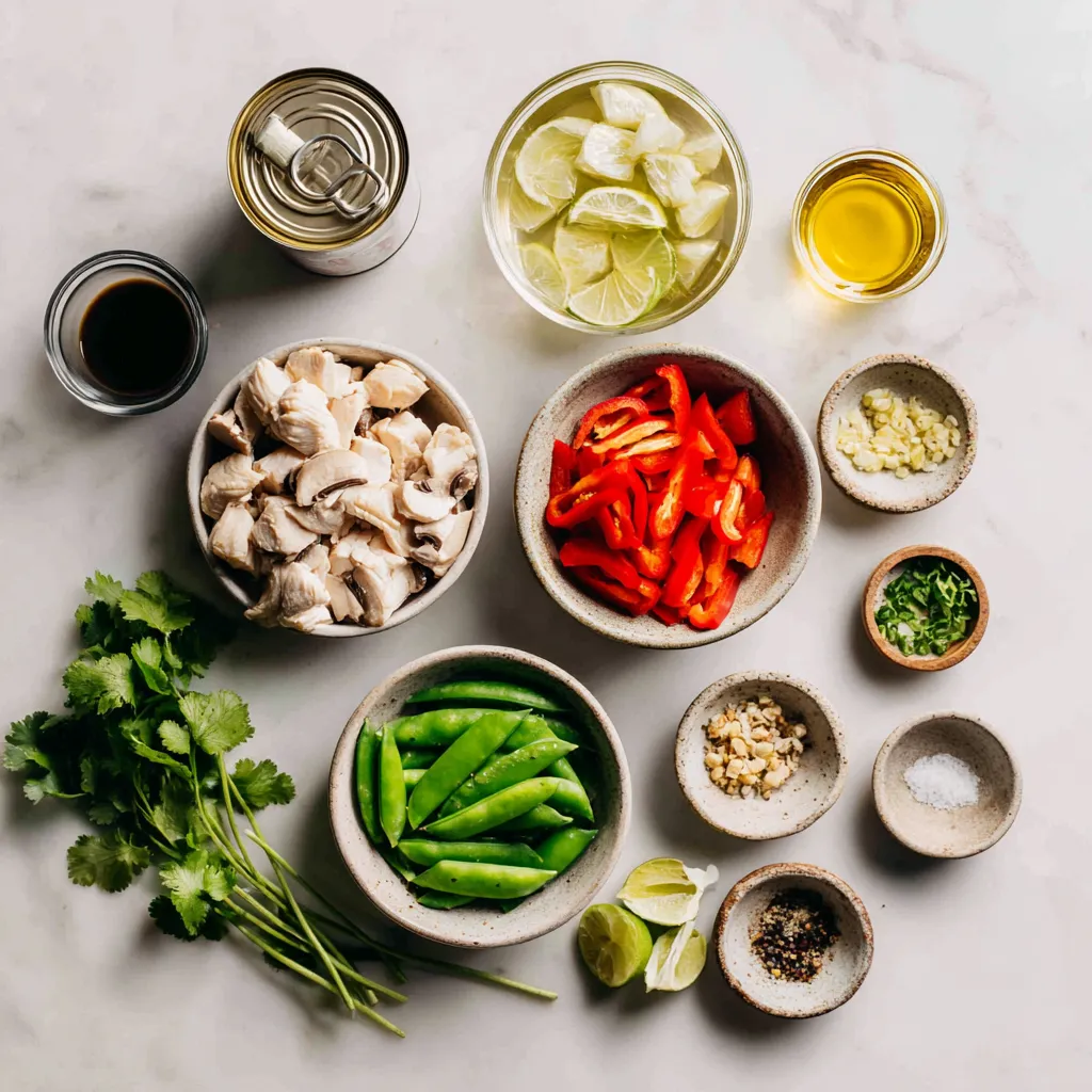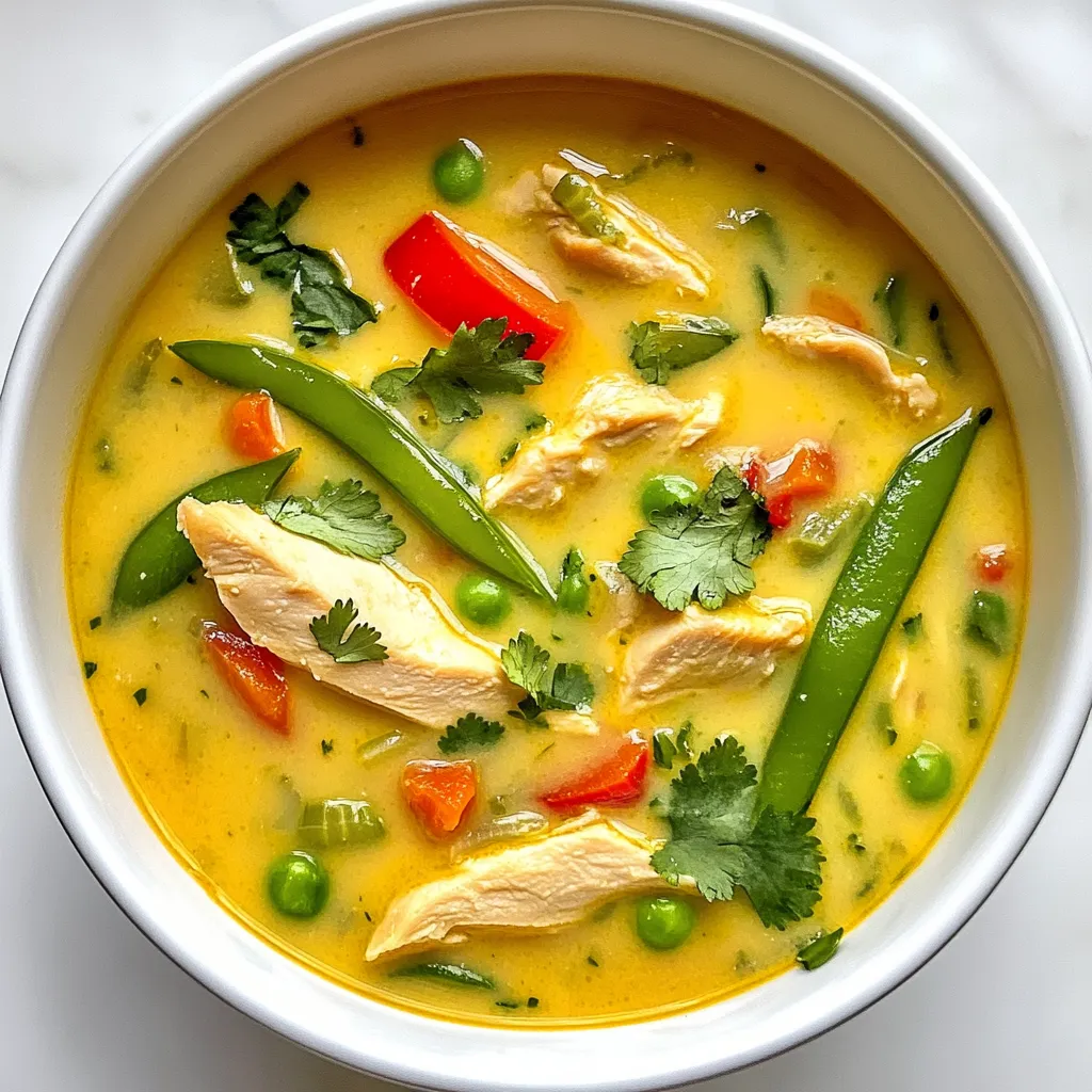 These ingredients come together to create a bright and flavorful soup. The chicken adds protein, while coconut milk gives it a creamy texture. The veggies add crunch and color, making it beautiful.
