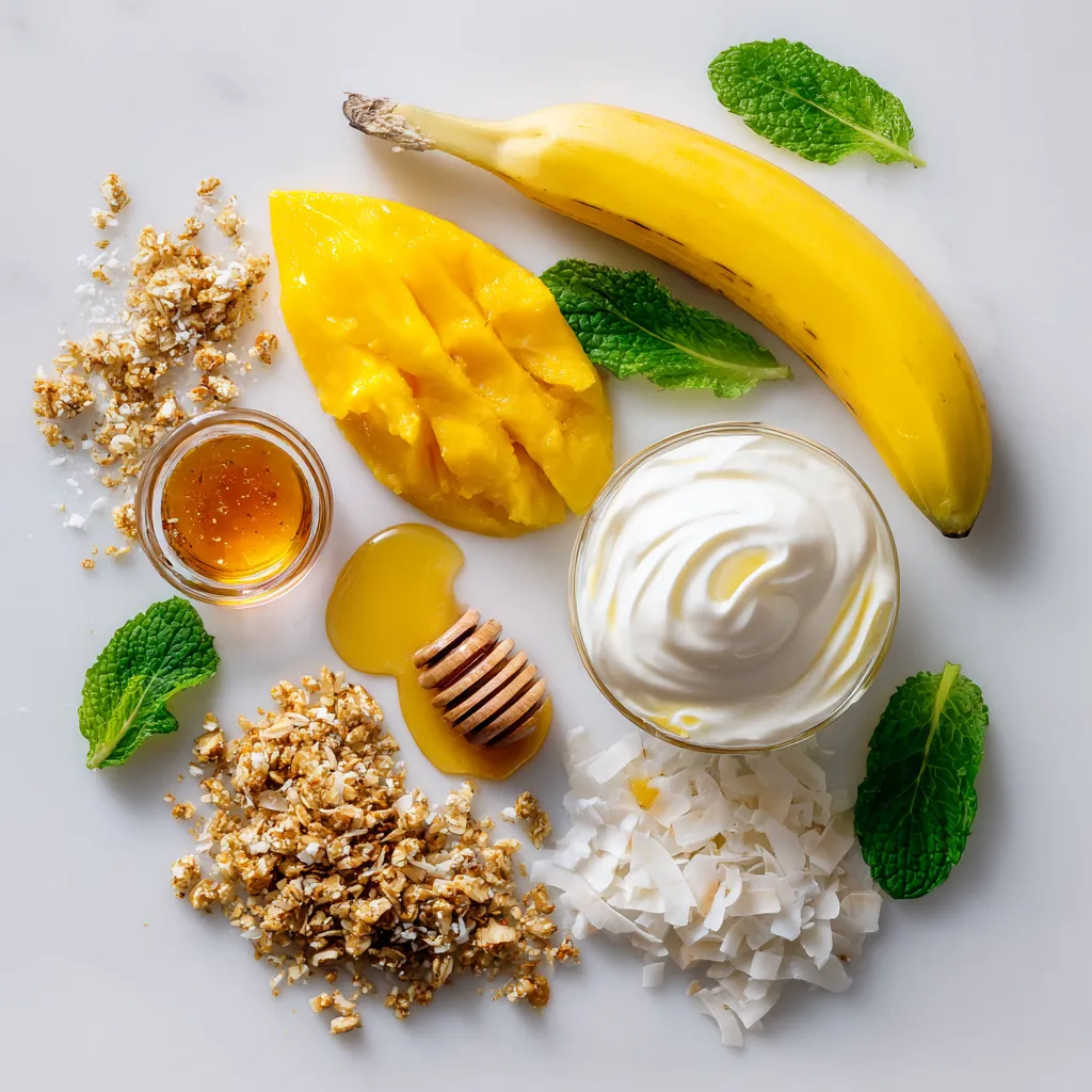 To make the coconut mango smoothie bowl, gather these simple ingredients: