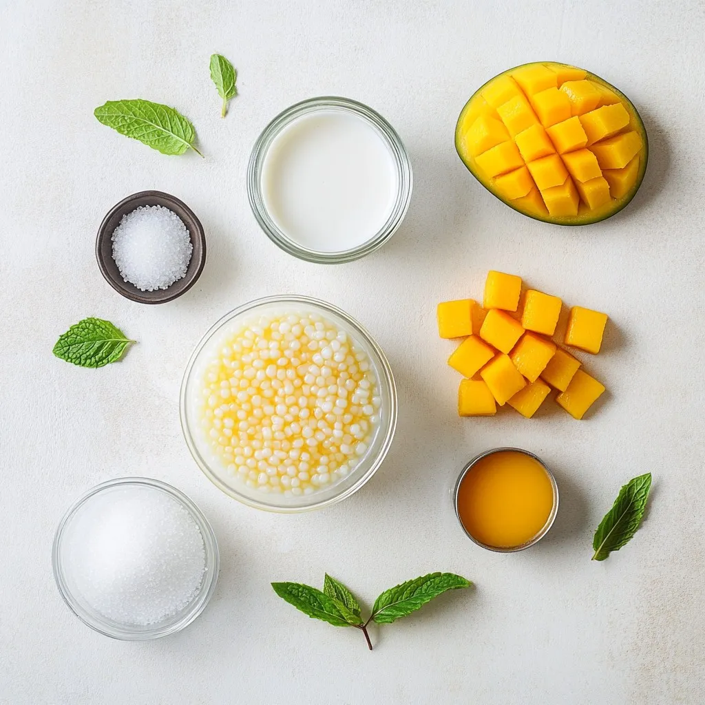 The main ingredients of this pudding create a creamy and fruity dessert. The small tapioca pearls are key. They give the pudding its unique texture. You can find them easily in most grocery stores. Coconut milk adds richness and a tropical taste. The mango puree brings sweetness and bright flavor. You can use fresh mango or canned puree based on what you have.