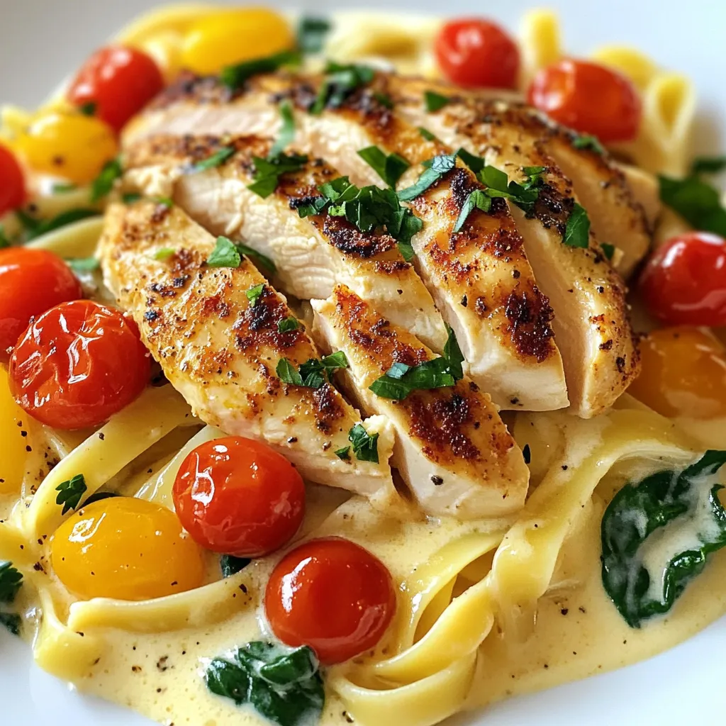 - Plate the Chicken Alfredo and garnish with chopped parsley for a fresh touch.