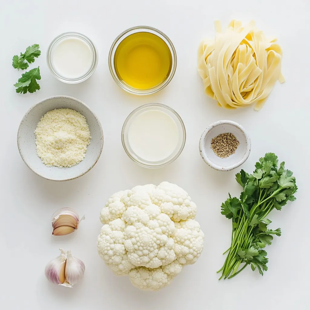 The main ingredients create a rich and creamy sauce. The cauliflower serves as the base. It gives the sauce its smooth texture. Olive oil adds a nice flavor and richness. Garlic adds depth and warmth. Nutritional yeast gives a cheesy taste without dairy. Lemon juice brightens the flavors. Onion powder adds a subtle sweetness, while salt and pepper balance everything out.