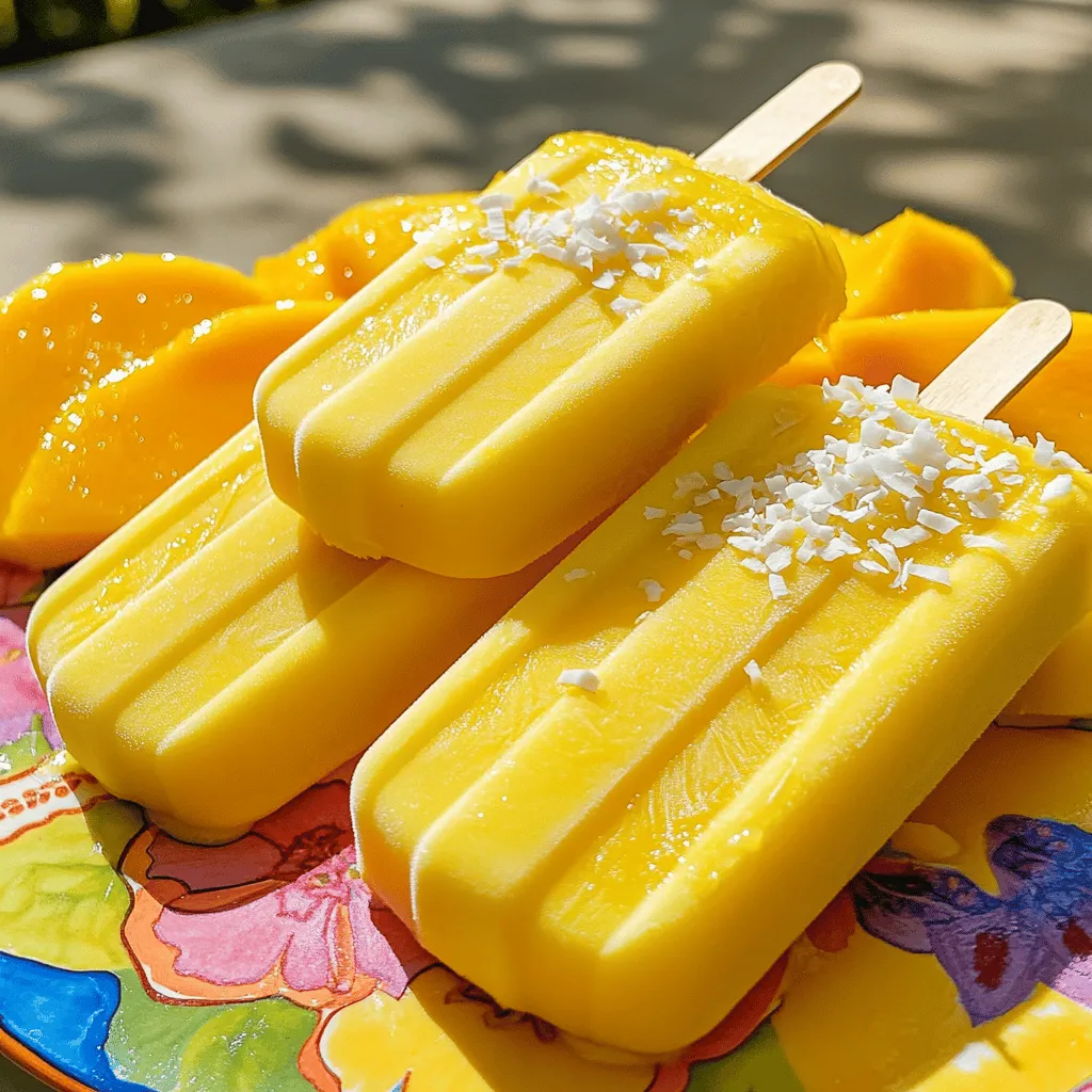 Make your popsicles look great. Arrange them on a bright platter. Add fresh mango slices and a sprinkle of shredded coconut on top. This adds color and texture. Serve them on a sunny day to enhance the fun of eating a cold treat.