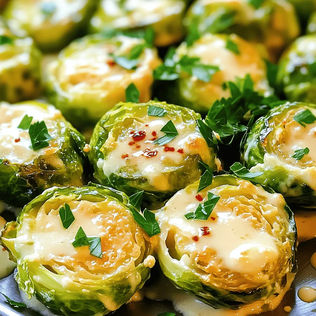 Oven-baking is easy. Toss halved Brussels sprouts with butter and garlic. Bake at 400°F for 20 minutes. Once done, pour your creamy sauce over them and serve.