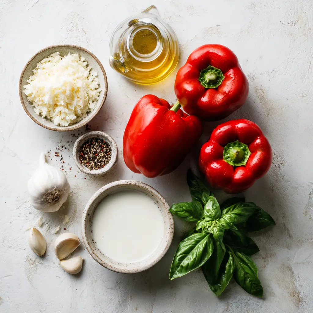 Each ingredient plays a key role in the dish. The pasta serves as the base, while the roasted red peppers add a sweet and smoky flavor. Cream gives the sauce its rich, velvety texture. Garlic adds depth, and Parmesan brings umami. Olive oil helps in cooking the sauce, and Italian seasoning ties the flavors together.