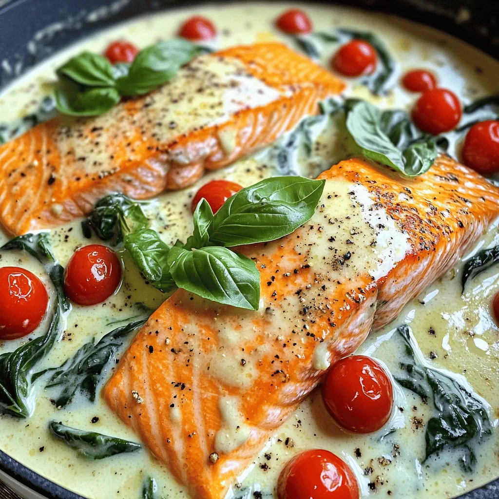 Each ingredient brings something special to the dish. The salmon provides rich flavor and healthy fats. Olive oil adds a nice base for cooking. Garlic gives it that warm, comforting aroma. Cherry tomatoes pop with sweetness and color, while spinach adds freshness. Heavy cream creates the sauce’s creamy texture, and parmesan cheese gives it depth. Italian seasoning ties all the flavors together.
