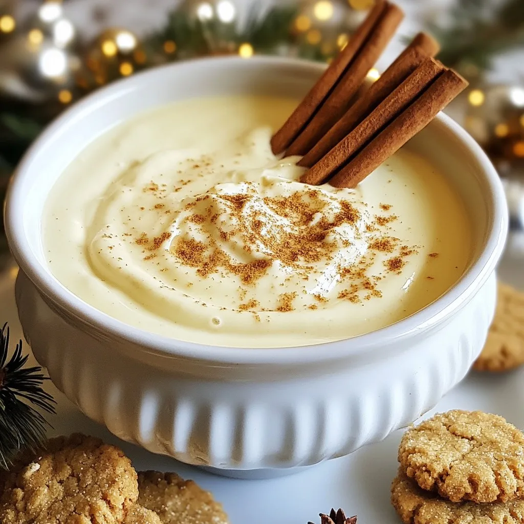 Feel free to get creative with the optional garnishes like crushed nutmeg or cinnamon sticks. They make your dip look even more festive!