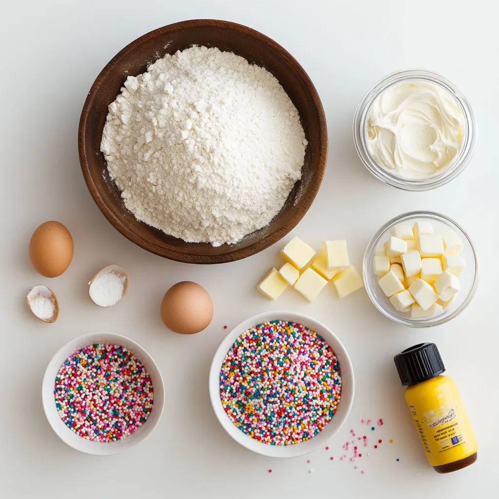 When I make Funfetti Sugar Cookie Bars, I love to gather the ingredients first. This helps me stay organized and focused.