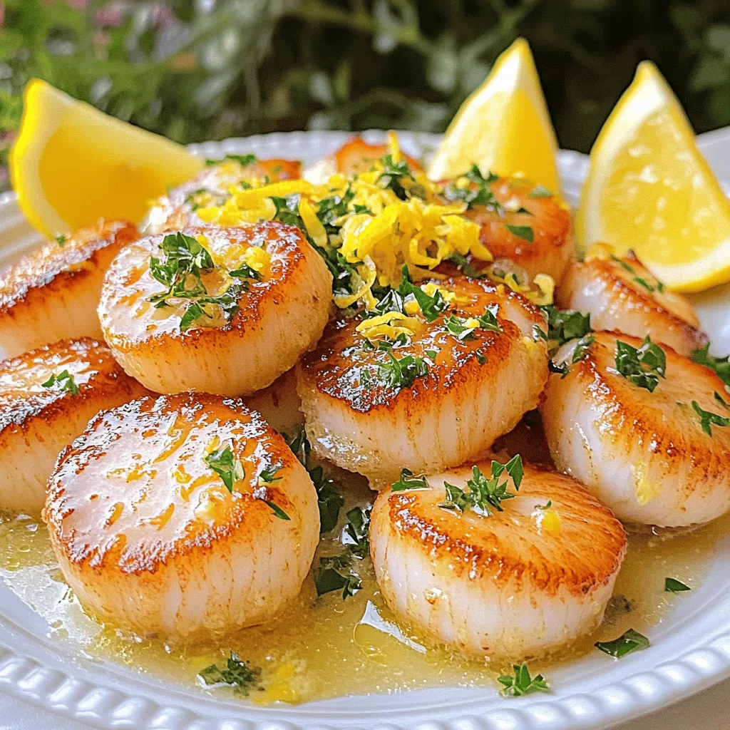 ![- 1 lb sea scallops, patted dry - 4 tablespoons unsalted butter, divided - 4 cloves garlic, minced - Zest of 1 lemon - 2 tablespoons fresh lemon juice - 2 tablespoons fresh parsley, chopped - Salt and pepper, to taste - Lemon wedges, for garnish Using fresh ingredients makes a big difference in your dish. The sea scallops should be the star. Buy them from a trusted source. Look for ones that are firm and smell fresh. Butter adds richness. Use unsalted butter to control the salt. Garlic gives a fragrant punch. Mince it well, so it spreads evenly. Lemon zest gives bright flavor. It enhances the scallops. Fresh lemon juice adds tang. Fresh parsley brings color and flavor. Use it for garnish, but also mix it in for freshness. Don’t forget salt and pepper for seasoning. Adjust these to your taste. Lastly, lemon wedges are perfect for serving. They provide an extra squeeze of flavor. For the full recipe and instructions, check out the complete guide. First, you need to pat dry the scallops. Use a paper towel to soak up moisture. This step is key for a good sear. Season both sides with salt and pepper. Just a pinch is enough. This adds flavor without overpowering the scallops. Next, choose a large skillet. A non-stick skillet works well. Heat 2 tablespoons of butter over medium-high heat. Wait until it melts and starts to bubble. This shows the pan is hot enough for cooking. Now, place the scallops in the skillet. Make sure they are in a single layer. Avoid overcrowding the pan; this helps them sear better. Cook them for about 2-3 minutes. Look for a golden-brown crust on one side. Gently flip each scallop using tongs. Now, add the minced garlic to the pan. Cook for another 2-3 minutes. Baste the scallops with the melted butter. This keeps them moist and adds flavor. Once the scallops are opaque and firm, it’s time for lemon. Add the zest and juice from the lemon. Then, add the remaining 2 tablespoons of butter. Toss everything gently for one more minute. This combines the flavors well. Finally, remove the skillet from heat. Stir in freshly chopped parsley for a pop of color. This adds freshness to your dish. Transfer the scallops to a serving plate. Drizzle with the garlic lemon butter sauce. Garnish with lemon wedges for a bright touch. For a full guide, check the [Full Recipe]. To get that perfect sear on your scallops, aim for a high heat. The skillet should be hot, but not smoking. A good range is between medium-high and high heat. This helps to form a nice crust. Avoid moving the scallops too soon. Let them cook for 2-3 minutes on one side. If you flip them too early, they might stick. Keep the scallops in a single layer. Overcrowding the pan can cause steaming instead of searing. When choosing scallops, fresh is best. Fresh scallops should smell like the ocean, not fishy. They should look plump and slightly moist. If you must use frozen scallops, make sure they are dry-packed. This means they are frozen without extra water, which helps with flavor. Sourcing scallops may vary by location. Local fish markets often have fresher options. If you can, ask for the catch of the day. This ensures you get the best flavor. To kick up the flavor, consider adding spices. A pinch of cayenne can add heat. Alternatively, try using smoked paprika for a unique twist. Herbs can also enhance the dish. Fresh thyme, tarragon, or basil can pair well. You can mix and match herbs for more depth. A little creativity can make your dish shine. For a full guide, check the Full Recipe of garlic lemon butter scallops. {{image_2}} You can use different herbs to change the flavor of your garlic lemon butter scallops. Consider thyme, tarragon, or basil. Each herb brings a unique taste. Mixing herbs can create even more complex flavors. For instance, thyme and lemon work well together. Tarragon adds a hint of sweetness. Basil offers a fresh and aromatic twist. Experiment to find your favorite blend! You can add vegetables to your dish for extra color and nutrition. Asparagus or spinach pairs nicely with scallops. Simply sauté them in the pan before adding the scallops. This adds a lovely crunch and flavor. If you like a bit of heat, sprinkle in some red pepper flakes. They bring a nice kick without overpowering the dish. Adjust the amount to suit your taste! Pair your scallops with delicious side dishes. A light salad or creamy risotto complements the flavors well. Garlic bread is another great option for scooping up that tasty sauce. For a drink, try a crisp white wine like Sauvignon Blanc. It matches the citrus notes of the dish. You can also go for a light sparkling water with lemon. It refreshes the palate beautifully. To keep your garlic lemon butter scallops fresh, follow these steps: - Refrigeration: Place scallops in an airtight container. This keeps them moist and prevents odors. Store in the fridge for up to two days. - Freezing: For longer storage, freeze scallops. Use a freezer-safe bag or container. Remove as much air as possible to prevent freezer burn. They can last about three months in the freezer. When it’s time to enjoy your leftovers, reheating carefully is key: - Best Methods: Reheat scallops in a skillet over low heat. Add a splash of water or broth to keep them moist. - Avoiding Texture Changes: Do not microwave them. This can make scallops rubbery. Always heat gently to maintain their tender texture. Knowing how long your cooked scallops last is important: - Fridge Duration: Cooked scallops last in the fridge for about two days. Make sure they are stored properly. - Signs of Spoilage: Check for an off smell, slimy texture, or discoloration. If you notice any of these signs, it's best to discard them. You can tell when scallops are cooked by looking for a few signs. They should turn opaque and firm. The outside should have a nice golden-brown crust. The ideal internal temperature for cooked scallops is 125°F (52°C). Use a meat thermometer for accuracy if you have one. Yes, you can use fro
