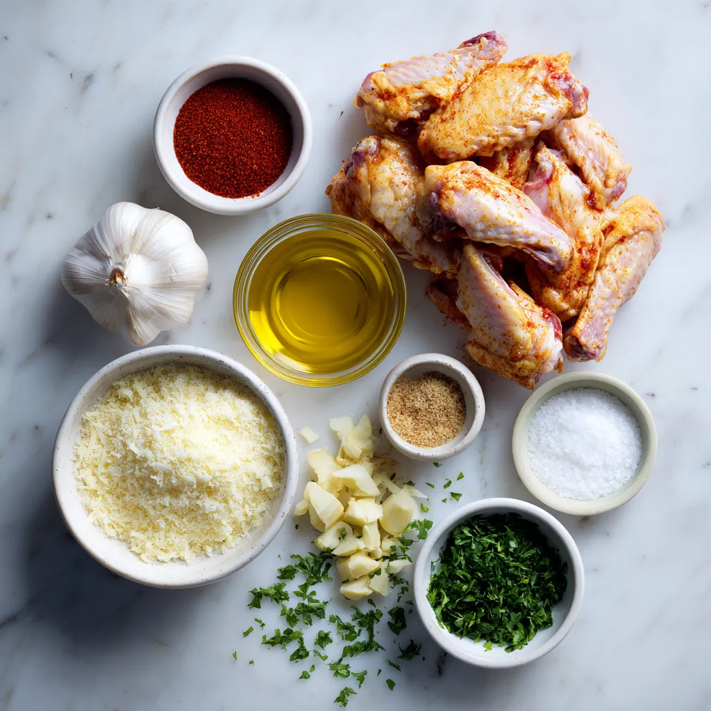 Each ingredient plays a key role in creating crispy, flavorful wings. The garlic offers a bold taste, while the Parmesan gives a rich, cheesy finish. Don’t skip the parsley; it brightens the dish. Make sure to gather everything before you start cooking for a smooth process.