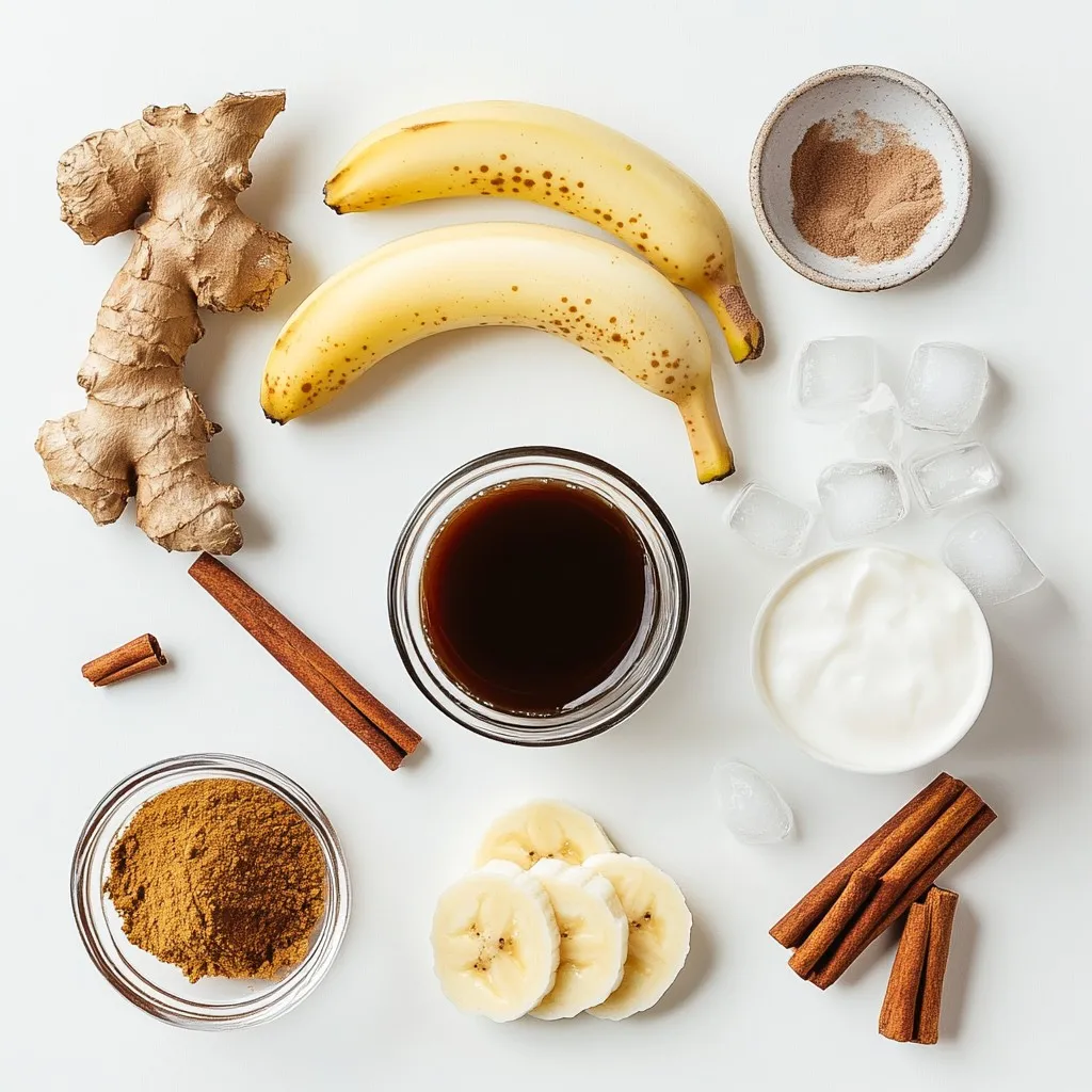 To make your gingerbread smoothie, start with the right tools. Grab a blender. Measure out 1 cup of almond milk or any milk you like. Next, take 1 frozen banana and 1/2 cup of plain Greek yogurt. This mix gives your smoothie a nice creamy base.
