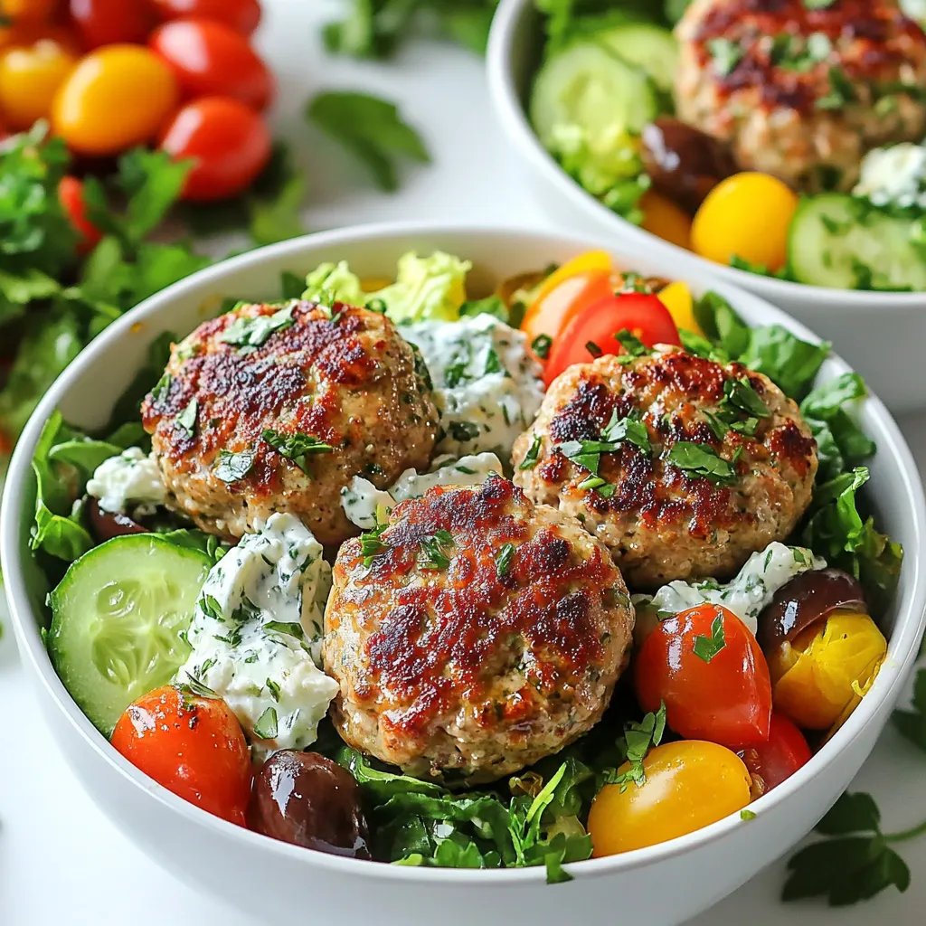 You can change the meat type in Greek Turkey Burger Bowls. Chicken or pork works well. Use ground chicken for a leaner option. It brings a mild flavor that pairs nicely with feta. If you prefer pork, choose ground pork. It adds a richer taste to your dish.