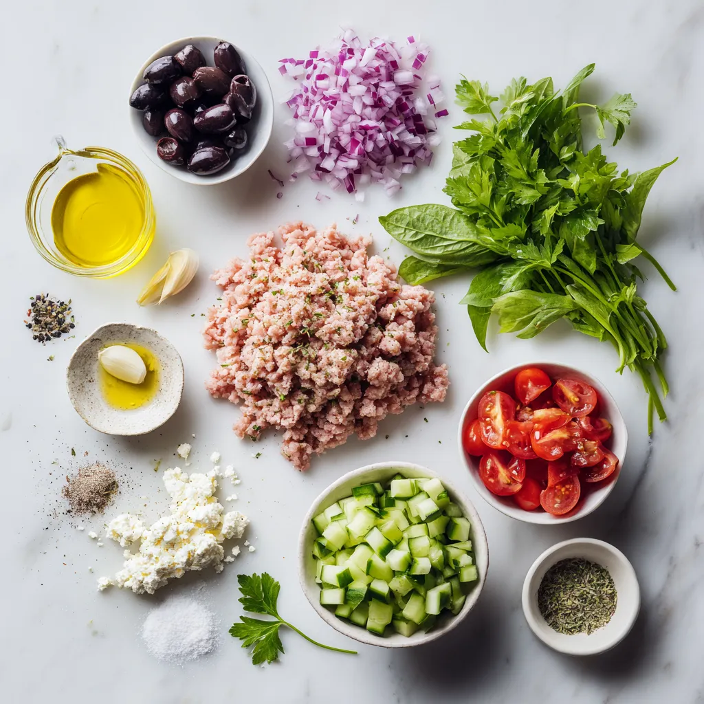 These ingredients come together to create a healthy and flavorful meal. Ground turkey is a lean protein that packs a punch. Feta cheese adds a creamy, tangy flavor, while Kalamata olives give a briny taste. Red onion and garlic bring strong flavors that make the dish pop.
