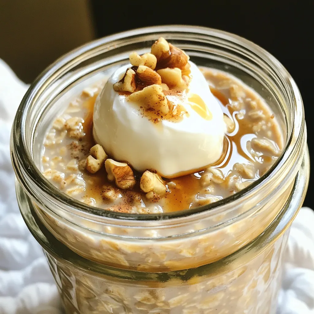 Seal the containers tightly and place them in the fridge overnight. This helps the oats and chia seeds soak up the liquid. In the morning, stir the oats well. If they are too thick, add a splash of milk. For serving, top with Greek yogurt for extra creaminess. You can drizzle more maple syrup on top if you like. Enjoy your oats directly from the jar or in a bowl!