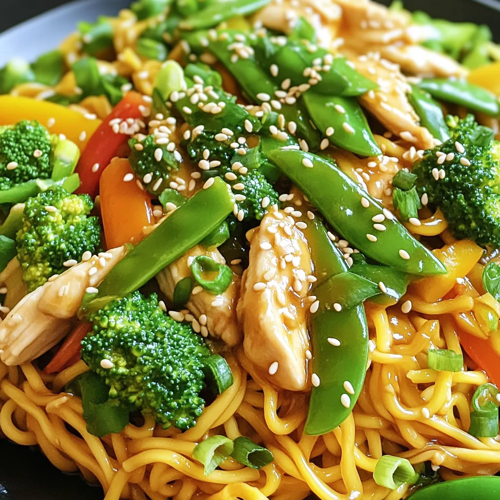To make my Honey Garlic Chicken Noodle Stir Fry, I focus on fresh and vibrant ingredients. First, I slice the chicken breasts thinly. This helps them cook fast and stay juicy. Next, I grab my egg noodles. They add a nice, chewy texture.