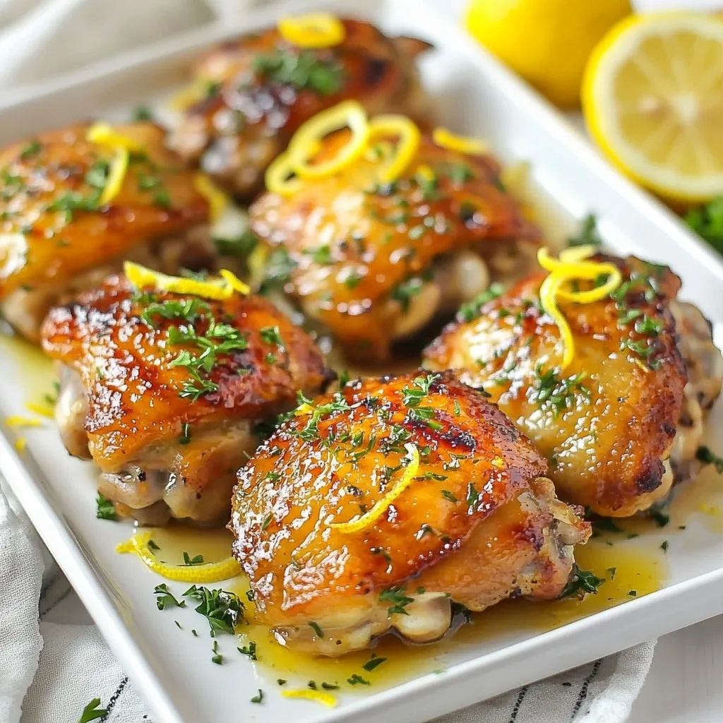 I suggest serving lemon garlic chicken thighs with rice or mashed potatoes. A side of steamed vegetables or a fresh salad works well too. These sides balance the rich flavors of the chicken.