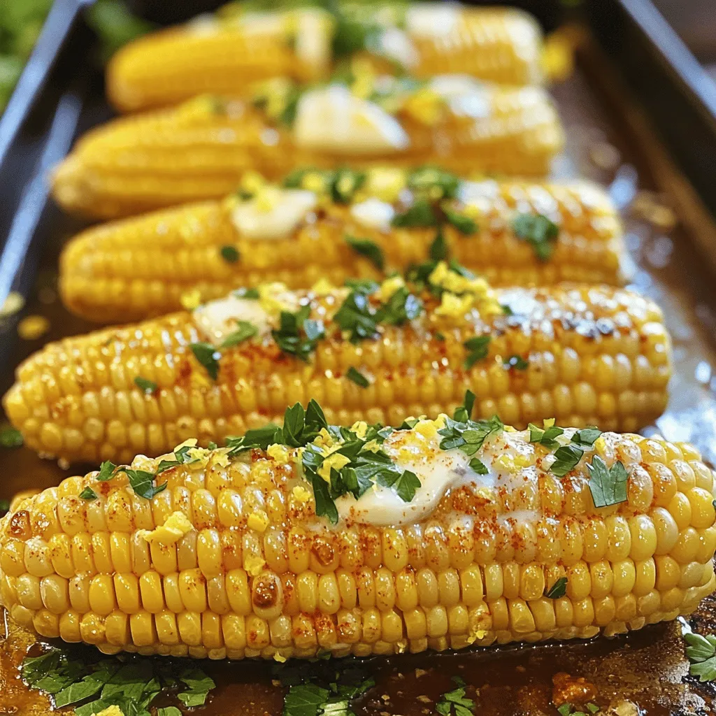 ![- 4 ears of corn, husked - 4 tablespoons unsalted butter, melted - 3 cloves garlic, minced - Zest of 1 lemon - 2 tablespoons fresh lemon juice - 1 teaspoon paprika - Salt and pepper to taste - Fresh parsley, chopped (for garnish) What can I use instead of unsalted butter? You can swap unsalted butter for olive oil or coconut oil. Both choices add nice flavors. What are alternatives for fresh garlic? You can use garlic powder as a quick fix. One teaspoon of garlic powder equals one clove of garlic. How can I substitute fresh lemon juice? If you don’t have fresh lemon juice, use bottled lemon juice. You might want to adjust the amount for taste. This recipe brings a burst of fresh taste to any meal. Check out the Full Recipe for cooking details! First, preheat your oven to 400°F (200°C). This step is key for even cooking. While the oven heats, prepare your baking sheet. Line it with parchment paper for easy cleanup. Next, mix the lemon garlic butter. In a small bowl, combine the melted butter, minced garlic, lemon zest, lemon juice, paprika, salt, and pepper. Stir until everything blends well. This mixture adds a bright flavor to the corn. Now, it’s time to coat the corn. Take your husked ears of corn and lay them on the prepared baking sheet. Use a brush to apply the lemon garlic mixture generously. Make sure every ear is well coated for the best taste. Roast the corn in the oven for 25-30 minutes. Turn the corn every 10 minutes. This helps it cook evenly and get a nice char. Look for tender corn with some golden spots when done. Once the corn is roasted, take it out and let it cool for a few minutes. Garnish with chopped fresh parsley for a pop of color. You can drizzle leftover garlic butter from the baking sheet over the corn for extra flavor. This dish pairs well with grilled meats or fresh salads. It makes a lovely side for summer barbecues or family dinners. For the full recipe, check out the complete guide on Lemon Garlic Roasted Corn. To make perfect roasted corn, you want the right char and tenderness. Start by preheating your oven to 400°F (200°C). This heat gives the corn that nice roasted flavor. Roast the corn for 25 to 30 minutes. Turn it every ten minutes. This ensures even cooking and nice char spots. For even coating of flavors, brush the lemon garlic mixture on each ear of corn. Use a basting brush for the best results. Make sure to coat all sides. This helps every bite burst with flavor. Serve your lemon garlic roasted corn right after cooking. It tastes best hot and fresh from the oven. The lemon juice and garlic flavors shine when warm. If you have leftovers, store them in an airtight container in the fridge. They last about three days. You can reheat them in the oven or microwave. For a quick snack, enjoy them cold or add them to salads. Try drizzling a little olive oil over the corn for extra flavor. For the full recipe, check out the [Full Recipe]. {{image_2}} To make lemon garlic roasted corn even more exciting, you can add herbs and spices. Fresh herbs like basil or cilantro can bring a nice twist. Dried spices like cumin or chili powder also work well. These options can change the flavor profile easily. If you like heat, try adding cayenne pepper or red pepper flakes. This addition gives your corn a spicy kick. You can mix these spices right into the butter for even coverage. You can grill your corn for a smoky flavor. To grill, soak the husked corn in water for 30 minutes. Then, place it on the grill over medium heat. Turn it every few minutes until it’s charred and cooked through. This takes about 15-20 minutes. If you prefer the stovetop, you can also use a skillet. Heat a bit of butter in a large pan over medium heat. Add the corn and cook for about 10-15 minutes. Stir frequently until it's tender and has a nice golden color. Each method gives you a unique taste, so feel free to experiment! You can find the full recipe [here]. To keep your Lemon Garlic Roasted Corn fresh, store it right. First, let the corn cool down. Then, wrap each ear in plastic wrap or place it in an airtight container. This keeps moisture in and prevents drying out. You can store it in the fridge for up to four days. If you want to save it for longer, freezing is a great option. Wrap each ear tightly in foil, then place them in a freezer bag. They can last for up to six months in the freezer. When it's time to enjoy your leftovers, you want them to taste great. There are a few ways to reheat them. The oven is my favorite method. Preheat it to 350°F (175°C). Place the corn on a baking sheet and cover it with foil. Heat for about 10-15 minutes. This warms the corn evenly without losing flavor. You can also use the microwave for a quicker option. Place the corn on a microwave-safe plate and cover it with a damp paper towel. Heat for 1-2 minutes, checking often to avoid overheating. If you want a bit of char, you can quickly sear the corn in a hot pan for a minute or two. Enjoy your tasty Lemon Garlic Roasted Corn just like it was fresh! For the full recipe, check out the details above. What can I substitute for corn on the cob? You can use canned corn or frozen corn. Both options work well. For canned corn, drain it well. For frozen corn, thaw it first. This swap can save time and still taste great. Can I use frozen corn for this recipe? Yes, frozen corn is perfect for this recipe. Just make sure to thaw it completely and pat it dry. This helps to avoid excess moisture. You can then follow the same roasting steps. How can I make Lemon Garlic Roasted Corn spicier? To add heat, you can mix in red pepper flakes or cayenne pepper. Just a pinch can spice things up. You can also add a dash of hot sauce to the butter mixture for an extra kick. What is the best way to select fresh corn? Look for corn with bright green husks. The silk should be silky and slightly sticky. Check that the kernels are plump and full. If they feel firm and slightly moist, you’ve got a winner! This blog c