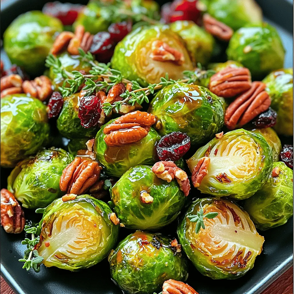 ![- 1 pound Brussels sprouts, trimmed and halved - 3 tablespoons olive oil - 1/4 cup pure maple syrup - 2 tablespoons balsamic vinegar - 1 teaspoon Dijon mustard - 1/2 teaspoon sea salt - 1/4 teaspoon freshly ground black pepper - 1/4 cup pecans, roughly chopped - 1/4 cup dried cranberries - Fresh thyme leaves for garnish (optional) When I make Maple Glazed Brussels Sprouts, I focus on fresh, high-quality ingredients. The main ingredients are simple yet powerful. I love using one pound of Brussels sprouts. Trim them carefully and cut them in half. This keeps them tender and allows for even cooking. The olive oil adds richness and helps the sprouts brown nicely. Maple syrup is the star of this dish. I always choose pure maple syrup. It adds sweetness and a unique flavor. The balsamic vinegar and Dijon mustard balance the sweetness. The sea salt enhances all the flavors without overpowering them. For garnishes, I often sprinkle freshly ground black pepper over the finished dish. Chopped pecans add crunch and nuttiness. Dried cranberries bring sweetness and a pop of color. If you want a fresh touch, add thyme leaves. These small details make the dish special. For the full recipe, check out the detailed cooking instructions. You will enjoy every bite! - Preheat your oven to 400°F (200°C). - In a large bowl, toss the Brussels sprouts with olive oil, salt, and pepper. This step coats them well and adds flavor. - Spread the Brussels sprouts in a single layer on a baking sheet. Make sure they are cut side down for even cooking. - Roast them for 20-25 minutes, until they are crispy and golden brown. You want them tender inside and crunchy outside. - In a small saucepan, whisk together maple syrup, balsamic vinegar, and Dijon mustard. - Heat this mixture over medium heat until well mixed. The glaze should be warm and smooth before you drizzle it on the sprouts. - After roasting, return the glazed Brussels sprouts to the oven for 5 more minutes. This helps the glaze caramelize. - When done, sprinkle with pecans and dried cranberries. If you like, garnish with fresh thyme leaves for a pop of color. For the complete recipe, check out [Full Recipe]. To make your maple glaze shine, use real maple syrup. It gives the best flavor. Store-bought syrups often lack depth. Keep an eye on the Brussels sprouts while roasting. They can burn quickly if you don't watch closely. You can change up the taste by adding nuts or dried fruits. Pecans add crunch, while cranberries add sweetness. Try adding a dash of cayenne or chili flakes if you like heat. This small change can make a big difference. If you have leftovers, store them in an airtight container. They will stay fresh for up to three days. When you want to eat them again, reheat in the oven. This helps keep their crispy texture. Enjoy your tasty dish again! For the full recipe, check out the Maple Glazed Brussels Sprouts recipe. {{image_2}} To make this dish vegan, you can replace butter with more olive oil. This keeps the flavor rich while sticking to plant-based options. Make sure all your ingredients are vegan-friendly. That way, everyone can enjoy this tasty treat. Maple glazed Brussels sprouts shine when you pair them with protein. Think grilled chicken or fish for a hearty meal. You can also serve these sprouts with quinoa or rice. This makes for a balanced and filling dinner. To add a fun twist, switch out dried cranberries for seasonal fruits. Roasted apples or pears make great substitutes. They bring extra sweetness and a lovely taste. This variation keeps your dish fresh and exciting with each season. To keep your maple glazed Brussels sprouts fresh, store them in an airtight container in the refrigerator. This helps retain their flavor and texture. They will stay good for up to three days. If you want to freeze them, start by laying the Brussels sprouts out on a baking sheet. Make sure they are not touching. Freeze them until solid, which usually takes about two hours. Once frozen, transfer them to a freezer-safe container. This method prevents them from sticking together. When you’re ready to enjoy your leftovers, reheat them to bring back that great crispiness. You can use the oven or a skillet. For the oven, set it to 375°F (190°C) and warm them for about 10-15 minutes. In a skillet, sauté them over medium heat until heated through. This keeps them tasty and crunchy. Enjoy your maple glazed Brussels sprouts again! For the full recipe, check out the details above. You can use honey or agave syrup. Both add sweetness. They work well in this recipe. Each gives a unique taste. Try them to find your favorite flavor. Yes, you can make this dish ahead. Just prepare the Brussels sprouts and glaze. Store them in the fridge. Reheat them before serving for the best taste. To reduce bitterness, blanch the Brussels sprouts first. Boil them in water for a few minutes. This softens their flavor. Pairing them with sweet ingredients, like maple syrup, also helps. These sprouts taste great with roasted meats. They also fit well in a vegetarian meal. Include them in a holiday feast or a cozy dinner. They bring a sweet and savory touch. This dish combines the tasty Brussels sprouts with a sweet maple glaze. You learned how to prepare and roast the sprouts perfectly. We also discussed fun variations and tips for enhancing flavor. In the end, Maple Glazed Brussels Sprouts can bring joy to any meal. Try them with your favorite proteins or grains. Enjoy the delicious mix of sweet and savory!](https://dailydishly.com/wp-content/uploads/2025/07/6c550e47-e99c-4554-a6d4-422f3e5f831a.webp)