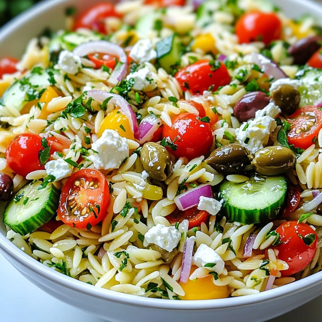 - Fresh and Vibrant: This Mediterranean Orzo Salad is bursting with fresh ingredients that bring a vibrant taste to every bite.