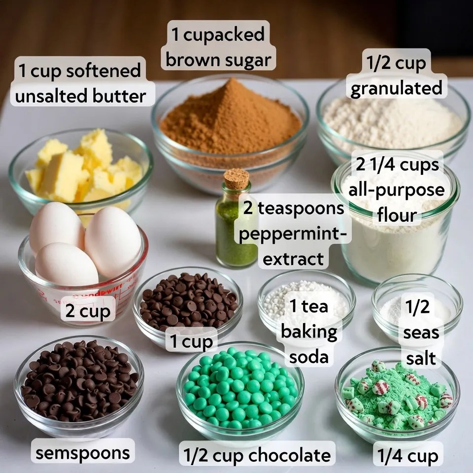 For this mint chocolate chip cookie recipe, each ingredient plays a key role. The unsalted butter gives a rich base. Brown sugar and granulated sugar add sweetness and moisture. Eggs help bind everything together.