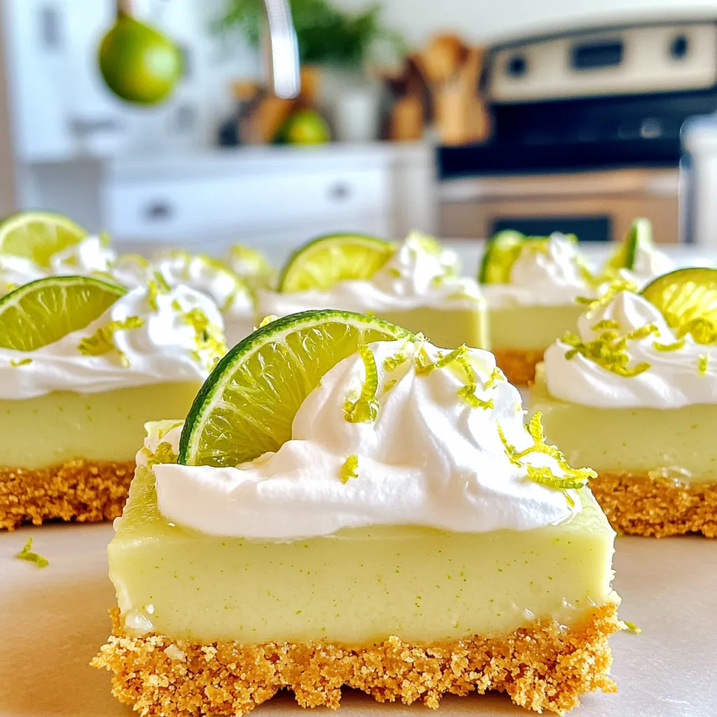 When serving, cut the bars into even squares. This makes them easy to grab. Top each bar with a dollop of whipped cream. A sprinkle of lime zest adds color and flavor. You can also add a lime slice on top. This looks pretty and fresh. Serve these bars cold for the best taste. Enjoy them at parties or casual get-togethers. They are sure to impress your guests!