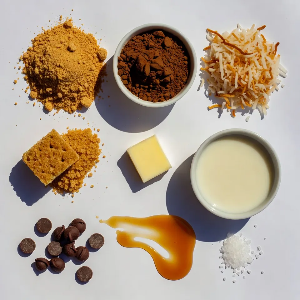 Here are the simple ingredients you need for no-bake Samoa cookie bars. Each one plays a key role in flavor and texture.