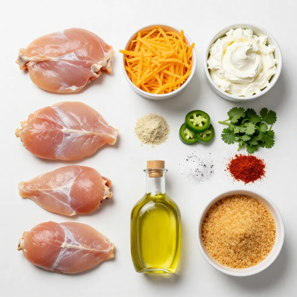 For this stuffed chicken, I choose boneless, skinless chicken breasts. They are easy to work with and cook quickly. The creamy filling features pepper jack cheese for a spicy kick and cream cheese for smoothness. Fresh cilantro adds a burst of flavor, while jalapeño gives it that extra heat.