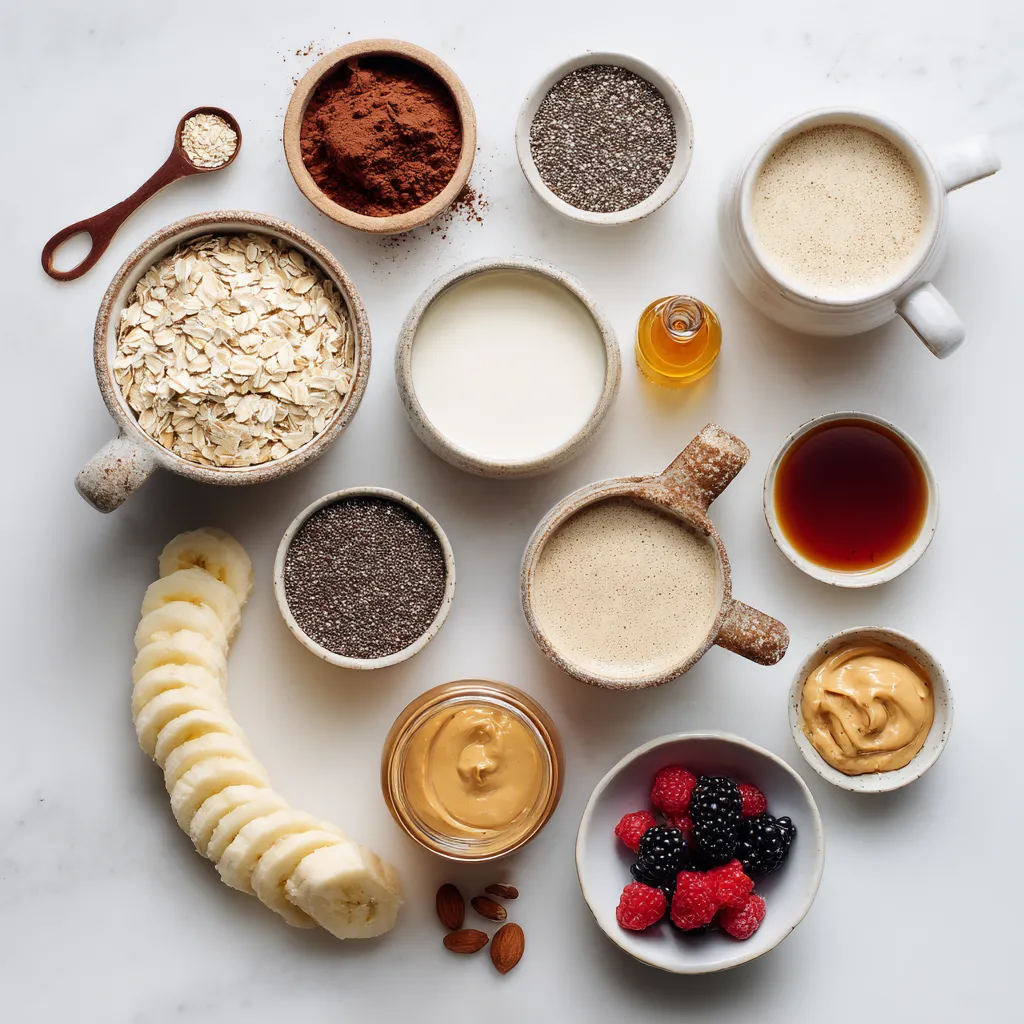 To make Protein Packed Chocolate Overnight Oats, gather these key ingredients: