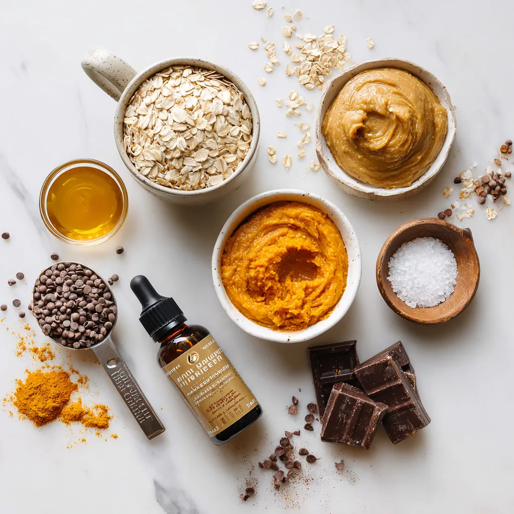These ingredients blend to create a tasty snack. The oats give a nice texture. The almond butter adds healthy fats. Pumpkin puree brings moisture and flavor. Honey or maple syrup sweetens the mix. Ground flaxseed packs fiber and nutrients.