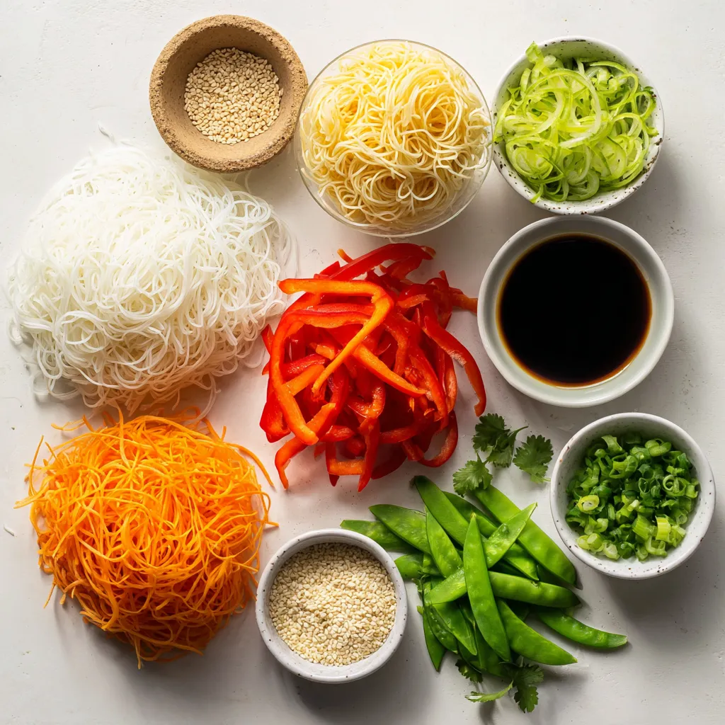 These ingredients create a colorful mix. The rice noodles give a nice base, while the veggies add crunch and flavor.