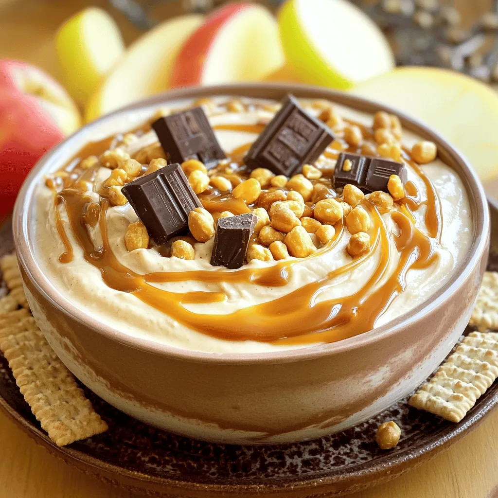 For a great presentation, transfer the dip to a nice serving bowl. Drizzle extra caramel sauce and chocolate syrup on top. This adds visual appeal and flavor. You can also garnish with mini chocolate bars or chopped peanuts. Serve with apple slices or graham crackers on the side. This way, everyone can enjoy dipping!
