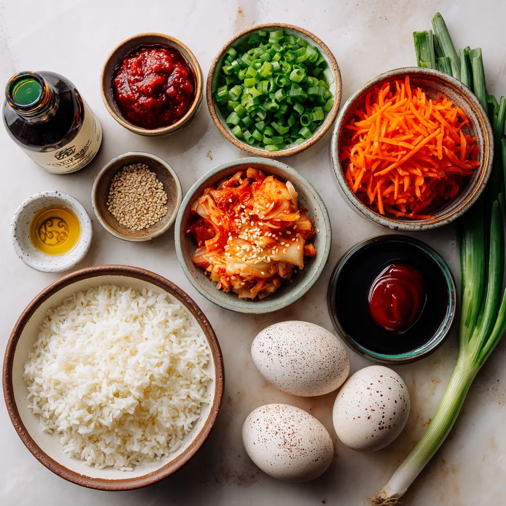 Chopped green onions give freshness and flavor. They also add color when you garnish. The carrots add a nice crunch and sweetness. The oil helps cook the ingredients. Gochujang is the star here, bringing heat and depth. Soy sauce gives umami, while sesame oil adds richness.