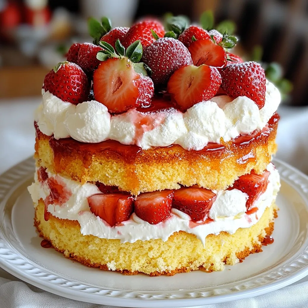 - 2 cups all-purpose flour - 1 cup granulated sugar - 1 tablespoon baking powder - 1/2 teaspoon salt - 1/2 cup unsalted butter, softened - 1 cup whole milk - 2 large eggs - 1 teaspoon vanilla extract - 2 cups fresh strawberries, hulled and sliced - 1 cup heavy cream - 3 tablespoons powdered sugar - 1 teaspoon vanilla extract (for cream) Gather these simple ingredients to make your strawberries and cream milk cake. The flour gives it structure, while sugar adds sweetness. Baking powder helps the cake rise, and salt enhances all the flavors. Softened butter makes the cake rich and moist. Whole milk is key for a tender crumb, and eggs bind everything together. Vanilla extract adds warmth and depth. Fresh strawberries bring a burst of flavor and color. Heavy cream turns into whipped cream, which makes the cake even more delightful. Powdered sugar sweetens the cream without adding grit. You can also add optional garnishes for extra flair. Strawberry sauce, crushed strawberries, or fresh strawberries can make your cake even prettier. They add taste and a lovely touch. Enjoy creating this simple yet tasty dessert! {{ingredient_image_1}} - Preheat the oven to 350°F (175°C). - Grease and flour two 9-inch round cake pans. - In a large bowl, mix the flour, sugar, baking powder, and salt. - Add the butter, milk, eggs, and vanilla. Beat until smooth. - Divide the batter evenly between the two pans. - Bake for 25-30 minutes. Test with a toothpick for doneness. - Let the cakes cool in the pans for 10 minutes. Move to a wire rack to cool fully. - Place one cake layer on a plate. Spread whipped cream on top. - Add half of the sliced strawberries over the cream. - Place the second layer on top. Spread more whipped cream and add the rest of the strawberries. - For a special touch, drizzle strawberry sauce or add crushed strawberries on top. - To bake perfect cakes, check your oven temperature. An oven that runs hot can burn the edges. - Use a toothpick to test doneness. It should come out clean when the cake is ready. - Ensure your butter is soft. This helps mix evenly and creates a light texture. - Always use room temperature eggs and milk. They blend better and create a smoother batter. - For perfect whipped cream, start with cold heavy cream. It whips up better and faster. - Use a clean bowl to avoid any grease. This helps the cream whip to its fullest. - Add powdered sugar slowly. This helps achieve the perfect sweetness without clumping. - You can add flavors like cocoa powder or almond extract. This adds a twist to your cream. - Serve slices on white plates. This makes the colors pop and looks elegant. - Garnish each slice with a fresh strawberry. It adds a bright touch and a burst of flavor. - Drizzle some strawberry sauce on each plate. This adds a fun visual and extra sweetness. - For a special occasion, consider layering the cake in clear cups. It makes a great display! Pro Tips Use Room Temperature Ingredients: Make sure your butter, eggs, and milk are at room temperature before mixing. This helps to create a smoother batter and ensures even baking. Don't Overmix the Batter: After adding the wet ingredients to the dry ingredients, mix just until combined. Overmixing can lead to a dense cake texture. Fresh Strawberries are Key: Use ripe, fresh strawberries for the best flavor. If strawberries aren't in season, consider using frozen ones, but make sure to thaw and drain them well. Chill the Whipped Cream: For better stability, chill the mixing bowl and beaters before whipping the cream. This will help it hold its shape when spread on the cake. {{image_2}} You can easily change the flavor of your cake. Try using different fruits. Raspberries and blueberries work great. They add a new twist to the dish. You can also add lemon or orange zest. This gives a nice citrus flavor. Just a teaspoon will brighten up the cake. Experiment with what you love. If you need gluten-free options, use gluten-free flour. This makes the cake safe for those with gluten issues. For a dairy-free version, swap out the cream and milk. Use almond milk or coconut cream instead. These alternatives still give a rich flavor. You won’t miss the dairy at all! You can serve this cake in fun ways. Try layering it in mason jars. This makes a cute dessert for parties. You can also bake the batter in cupcake forms. They are easy to share and eat. Another idea is to make a sheet cake. Simply spread the batter in a large pan and cut it into squares. These options make the cake fit any occasion! To keep your cake fresh, wrap it tightly. Use plastic wrap or foil to cover it. You can also place it in an airtight container. This helps keep the cake moist and tasty. Store it in the fridge for up to five days. If you want to save some cake, freezing works well. First, slice the cake into pieces. Wrap each piece in plastic wrap. Then place the wrapped pieces in a freezer bag. The cake stays fresh for about three months in the freezer. When you are ready to eat the frozen cake, take it out. Let it thaw in the fridge overnight. If you want to warm it, use a microwave or oven. Heat it at 300°F (150°C) for about 10 minutes. Enjoy your cake warm or cold! Can I use frozen strawberries? Yes, you can use frozen strawberries. Thaw and drain them first. This helps avoid extra moisture in your cake. How can I make the cake more moist? To make the cake moist, try adding a bit more whole milk or butter. You can also use yogurt for a richer texture. Can this recipe be doubled for a larger gathering? Absolutely! Just double all the ingredients. You may need to bake in batches or use larger pans. What can I use instead of heavy cream? You can use coconut cream or whipped coconut milk. These are great non-dairy options. How do I make this recipe egg-free? Replace eggs with 1/4 cup of applesauce or 1/4 cup of mashed banana. Both work well in cake recipes. What flavors pair well with strawberries and cream? Lemon, vanilla, and mint are great flavors. They en