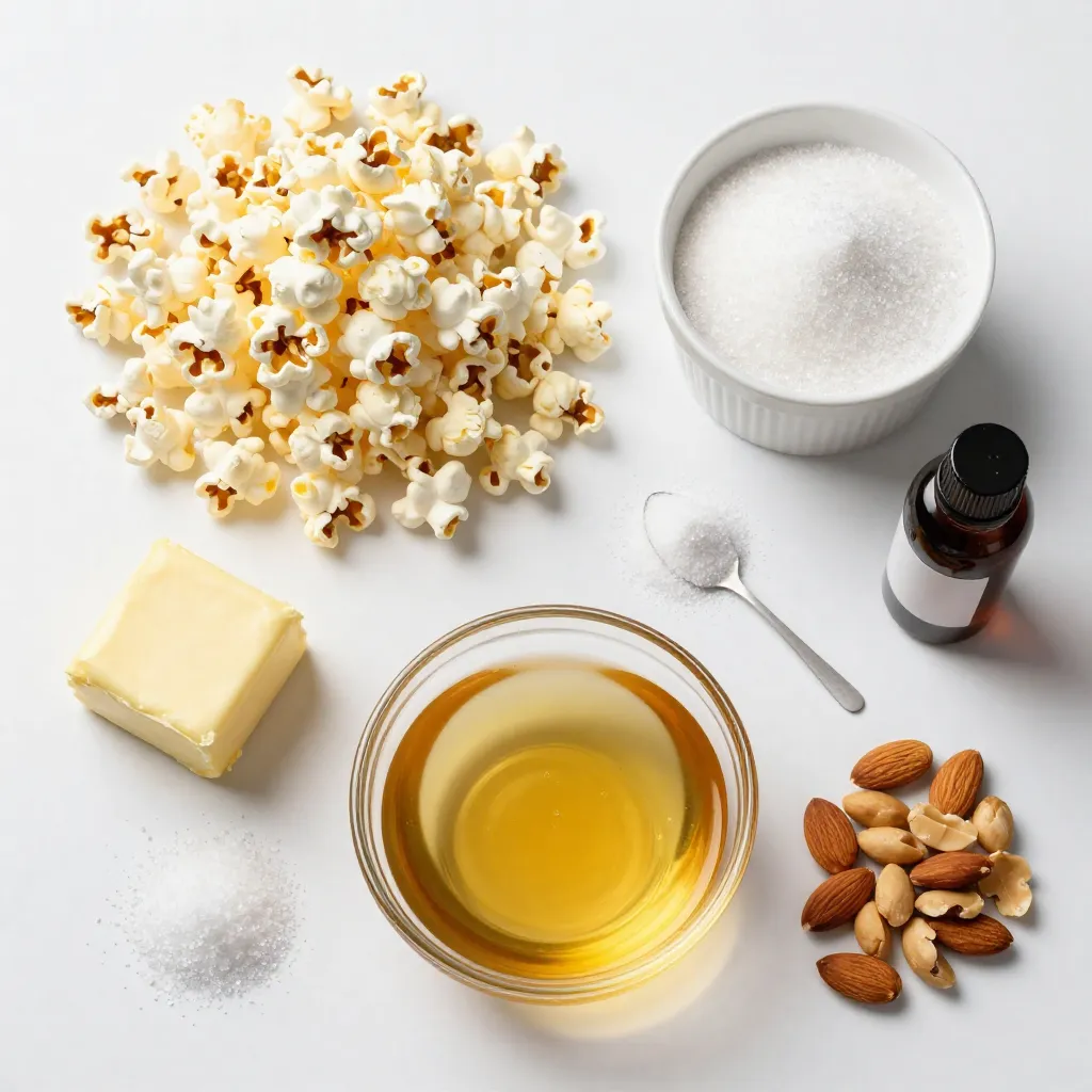 Each ingredient plays a role. The popcorn forms the base. Sugar, butter, and corn syrup create the caramel. Vanilla, baking soda, and salt enhance the taste. Roasted nuts add texture.