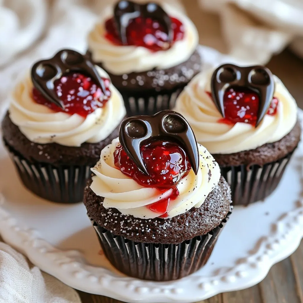 - 1 ¾ cups all-purpose flour - 1 cup granulated sugar - ½ cup unsweetened cocoa powder - 1 teaspoon baking soda - ½ teaspoon salt - 1 cup buttermilk - ½ cup vegetable oil - 2 large eggs - 1 teaspoon vanilla extract - 1 cup dark chocolate chips - 1 ½ cups red raspberry or cherry jam (for the blood) - 2 cups whipped cream (for topping) - Edible black glitter or sprinkles - Chocolate vampire fangs You can swap all-purpose flour for a gluten-free mix. Use almond milk instead of buttermilk for a dairy-free option. If you want less sugar, try using a sugar substitute. You can also use any flavor of jam. Strawberry or blackberry can work well. For a fun twist, use vanilla frosting instead of whipped cream. This adds a different taste and keeps it light. {{ingredient_image_1}} First, gather your ingredients. You need flour, sugar, cocoa powder, baking soda, salt, buttermilk, oil, eggs, and vanilla. In a large bowl, mix the flour, sugar, cocoa powder, baking soda, and salt together. Whisk until everything blends well. In another bowl, mix the buttermilk, vegetable oil, eggs, and vanilla extract. Stir until the mixture is smooth. Slowly pour this wet mix into the dry mix. Stir gently until just combined. Be careful to not overmix! Fold in the dark chocolate chips. Now, preheat your oven to 350°F (175°C). Line a cupcake pan with cupcake liners. Fill each liner with the batter, about three-quarters full. Bake for 18 to 20 minutes. Check if they are done by inserting a toothpick. It should come out clean. After baking, let them cool completely. Once your cupcakes cool, it’s time to make them spooky! Use a small knife or a cupcake corer to cut a hole in the center of each cupcake. Fill this hole with about a teaspoon of raspberry or cherry jam. This jam will look like blood! Next, top each cupcake with whipped cream. This fluffy layer will look just like a potion's frothy top! For a fun finish, sprinkle edible black glitter or sprinkles on top. If you want, add chocolate vampire fangs for an extra spooky touch. Enjoy your Vampire Bite Cupcakes! To make soft and tasty cupcakes, follow these steps. Use fresh ingredients for the best results. Measure your flour correctly. Use the spoon and level method to avoid extra flour. This keeps your cupcakes light. Mix the batter until just combined. Overmixing makes them tough. For a great jam filling, choose high-quality raspberry or cherry jam. These flavors add a sweet and tart touch. Use a small knife or corer to create a hole. Fill each cupcake with about a teaspoon of jam. Make sure to fill it enough for that "bite" effect but not too much. You want it to ooze just a bit when you take a bite! Make your cupcakes look spooky with these fun ideas. Top them with whipped cream to mimic potion froth. Add edible black glitter or sprinkles for a creepy touch. For an extra effect, place chocolate vampire fangs on top. This adds an exciting flair. Use a piping bag for smooth whipped cream swirls. This will impress your friends and family. Pro Tips Use Room Temperature Ingredients: Ensure that your buttermilk and eggs are at room temperature for a smoother batter and better rise. Don’t Overmix: When combining wet and dry ingredients, mix until just combined to keep the cupcakes light and fluffy. Cool Completely: Allow your cupcakes to cool completely before filling them with jam to prevent melting and sogginess. Decorate Just Before Serving: For the best presentation, top your cupcakes with whipped cream and decorations right before serving to maintain their freshness. {{image_2}} You can easily switch up the flavors of your Vampire Bite Cupcakes. Chocolate is a classic choice. It gives a rich, dark taste that pairs well with the jam. Red velvet is another fun option. Its bright color adds to the spooky look. To make red velvet cupcakes, use the same amount of flour and sugar but add red food coloring. You can also try vanilla or lemon for a lighter flavor. The filling is key to the vampire bite effect. You can use raspberry or cherry jam for a bloody look. If you want something different, try strawberry or blackberry jam. For a creamy filling, use whipped cream mixed with a bit of vanilla. This adds a nice contrast to the cupcake. You could also try chocolate mousse for a rich and decadent treat. Decorations can change your cupcakes for any theme. For Halloween, edible black glitter looks great. You can also use orange and purple sprinkles for a festive touch. If you want a spooky feel, chocolate vampire fangs are perfect. For a birthday party, use colorful frosting and fun sprinkles. You can even add cute candy bats or ghosts. This allows you to personalize your cupcakes for any event. To keep your vampire bite cupcakes fresh, store them in an airtight container. This helps prevent them from drying out. Place the container at room temperature for up to three days. If you live in a hot area, put them in the fridge. Just remember, cold air can make cupcakes dry. If your cupcakes are frosted with whipped cream, store them in the fridge. The cream needs to stay cool. Use a container with a lid that seals tight. If you have un-frosted cupcakes, you can leave them at room temperature. They will stay nice for a few days. Just make sure to cover them with plastic wrap or a lid. Want to save your vampire bite cupcakes for later? You can freeze them! Wrap each cupcake in plastic wrap. Then, place them in a freezer bag. They will stay good for about three months. When you are ready to eat them, thaw them in the fridge overnight. Frost them when they are soft again. Enjoy the spooky delight whenever you want! To make vampire bite cupcakes gluten-free, swap the all-purpose flour for gluten-free flour. Make sure the mix is a 1:1 ratio. This ensures the texture stays similar. Check your baking powder too. Some brands contain gluten. Yes, you can make these cupcakes ahead of time. Bake them a day or two before your event. Store the cooled cupcakes in an airtight containe